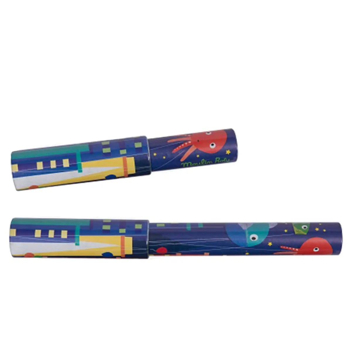 Illustrated with a decor of the city by day or by night. Turn, at the same time and against the grain, the two parts of this kaleidoscope to discover more and more new combinations of colors0.