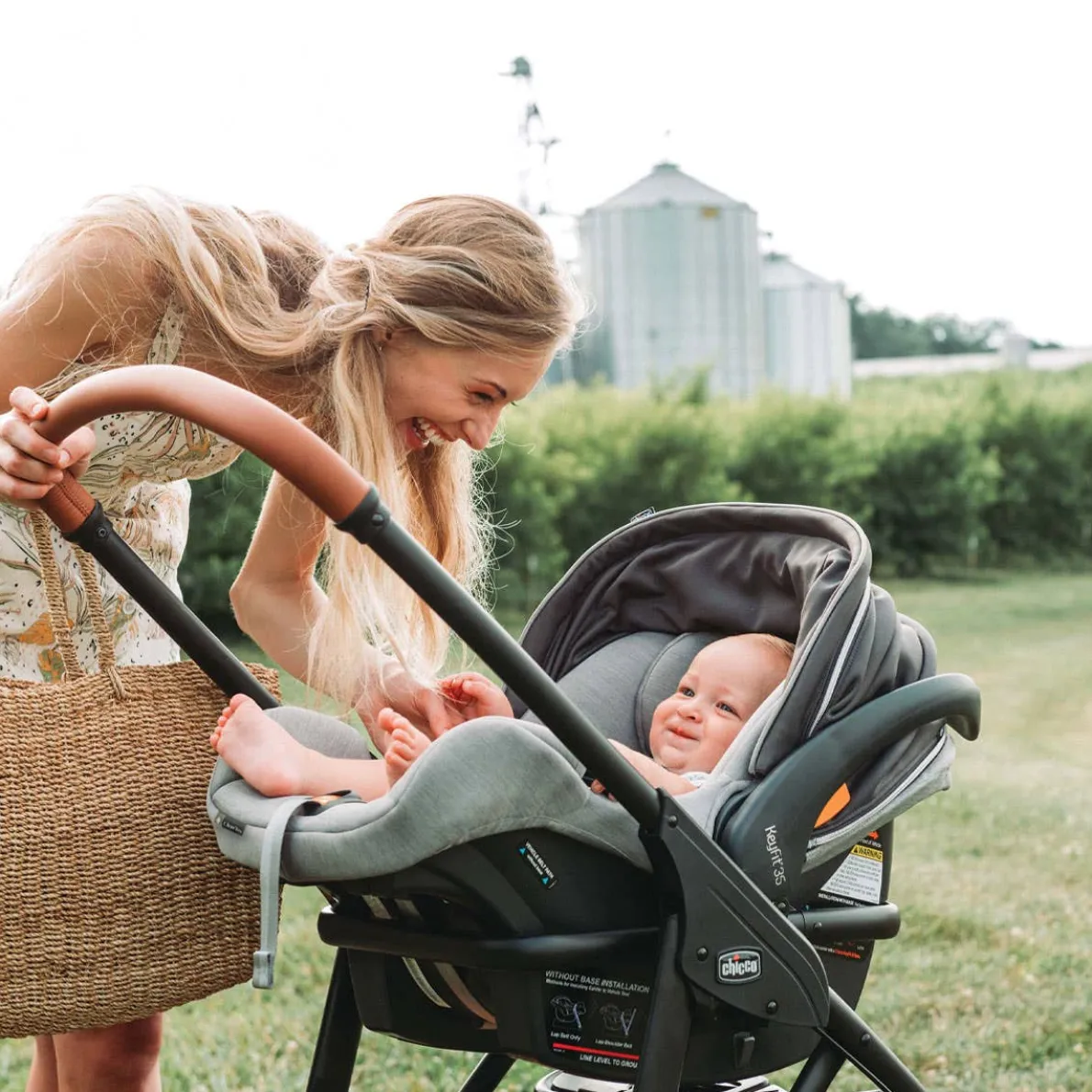 KeyFit® 35 ClearTex® offers one-hand, click-in attachment for effortless mobility with compatible Chicco strollers (sold separately). When traveling or on-the-go, integrated European belt routing provides 3 points of contact for a secure, carrier-only install.