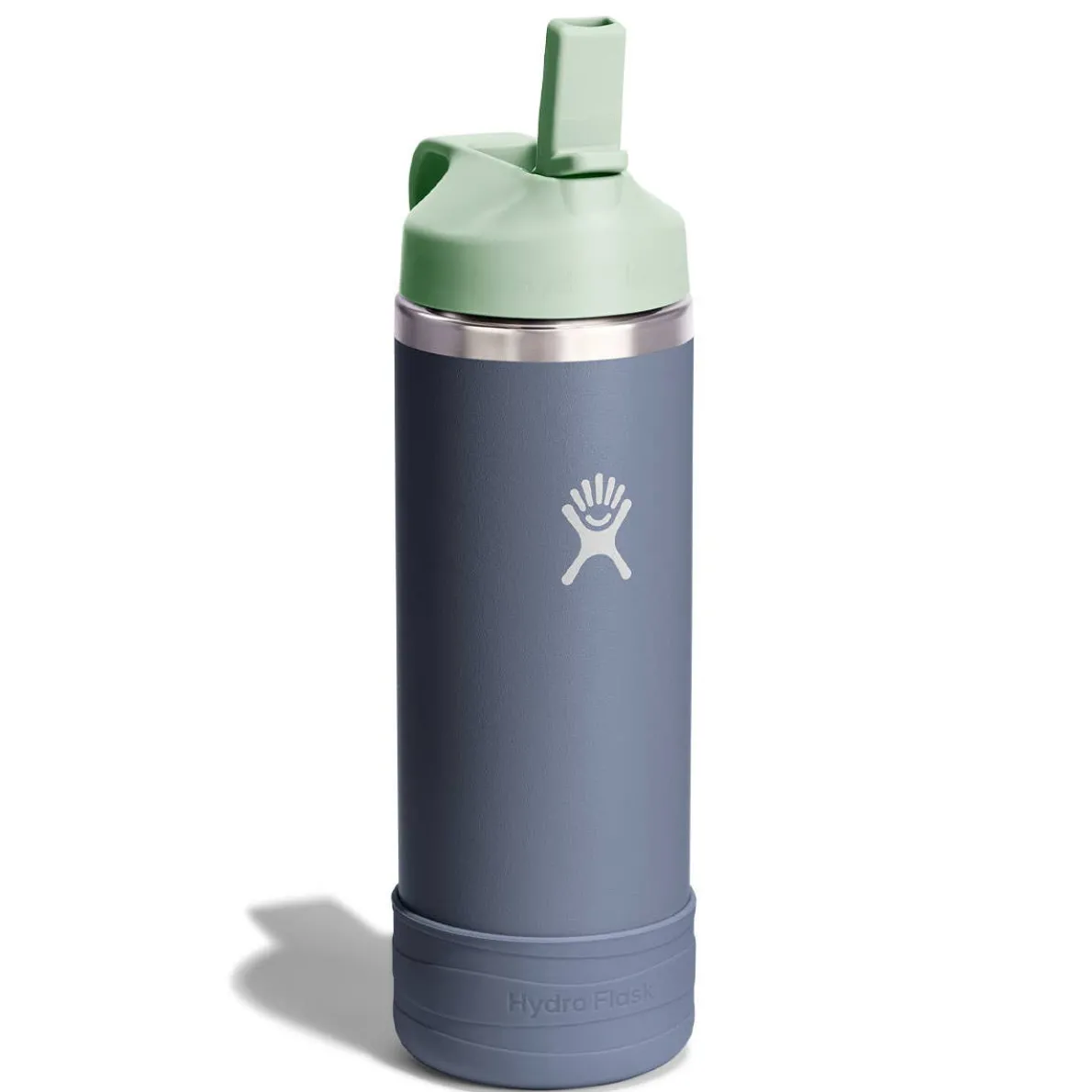 A small size for big adventures. The kid’s 18 oz stainless steel water bottle is the perfect insulated bottle for school, family hikes and everyday hydration. The straw cap makes sipping easy, and the double-wall stainless steel construction keeps cold drinks cold for up to 24 hours. Please note that the Wide Mouth Straw Lid is not leakproof and is not intended for use with hot liquids.
