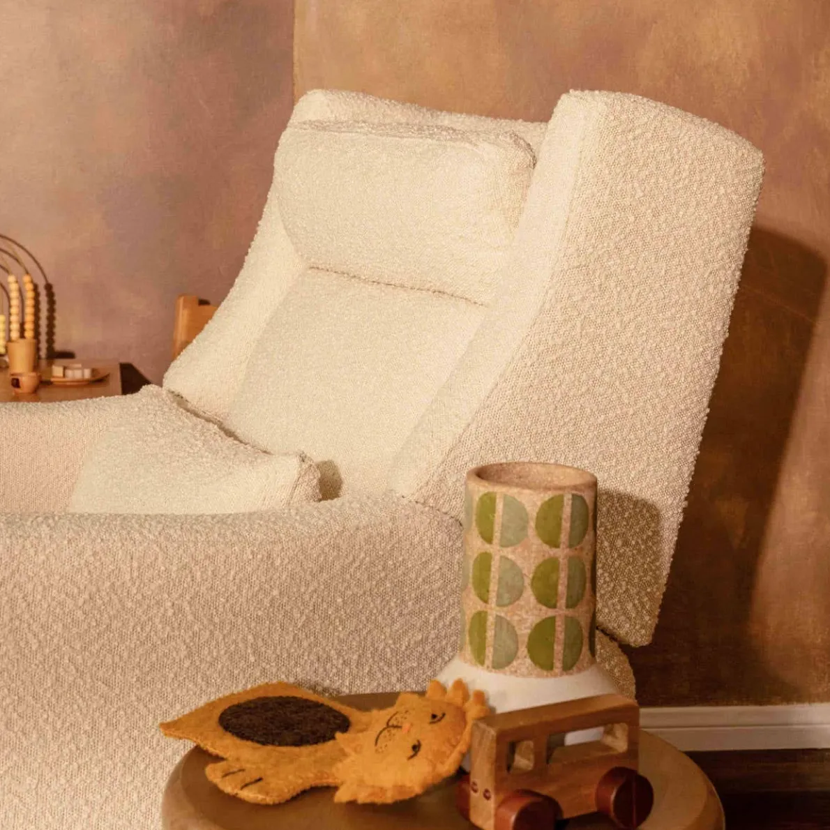 Babyletto #1 best selling recliner just got an upgrade! The Kiwi Plus has all the best features of our popular Kiwi Electronic Recliner & Glider – now with an adjustable headrest for even more personalized comfort! Designed to cradle you in relaxation, this stylish recliner features a smooth swivel and gentle gliding motion, making it perfect for cozy moments with your baby or unwinding after a long day. The new adjustable power headrest provides extra support, ensuring that no matter your position, you’ll always be sitting comfortably. With its sleek, modern design and plush cushioning, the Kiwi Plus seamlessly blends style with function, enhancing any nursery or living space.