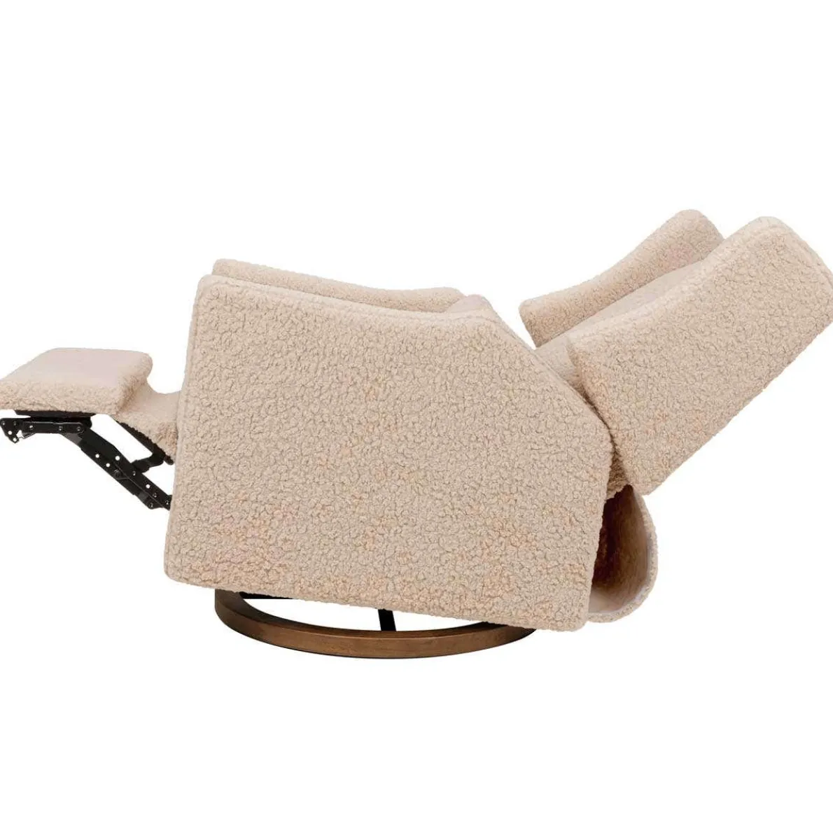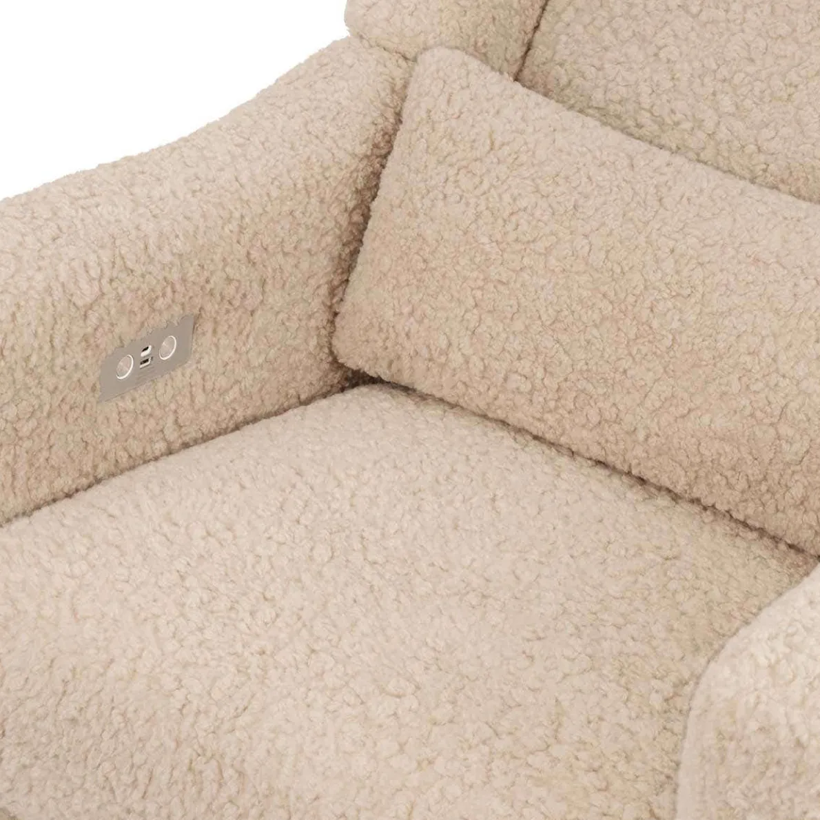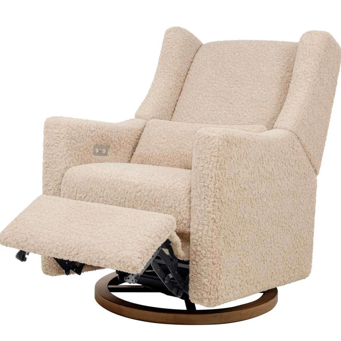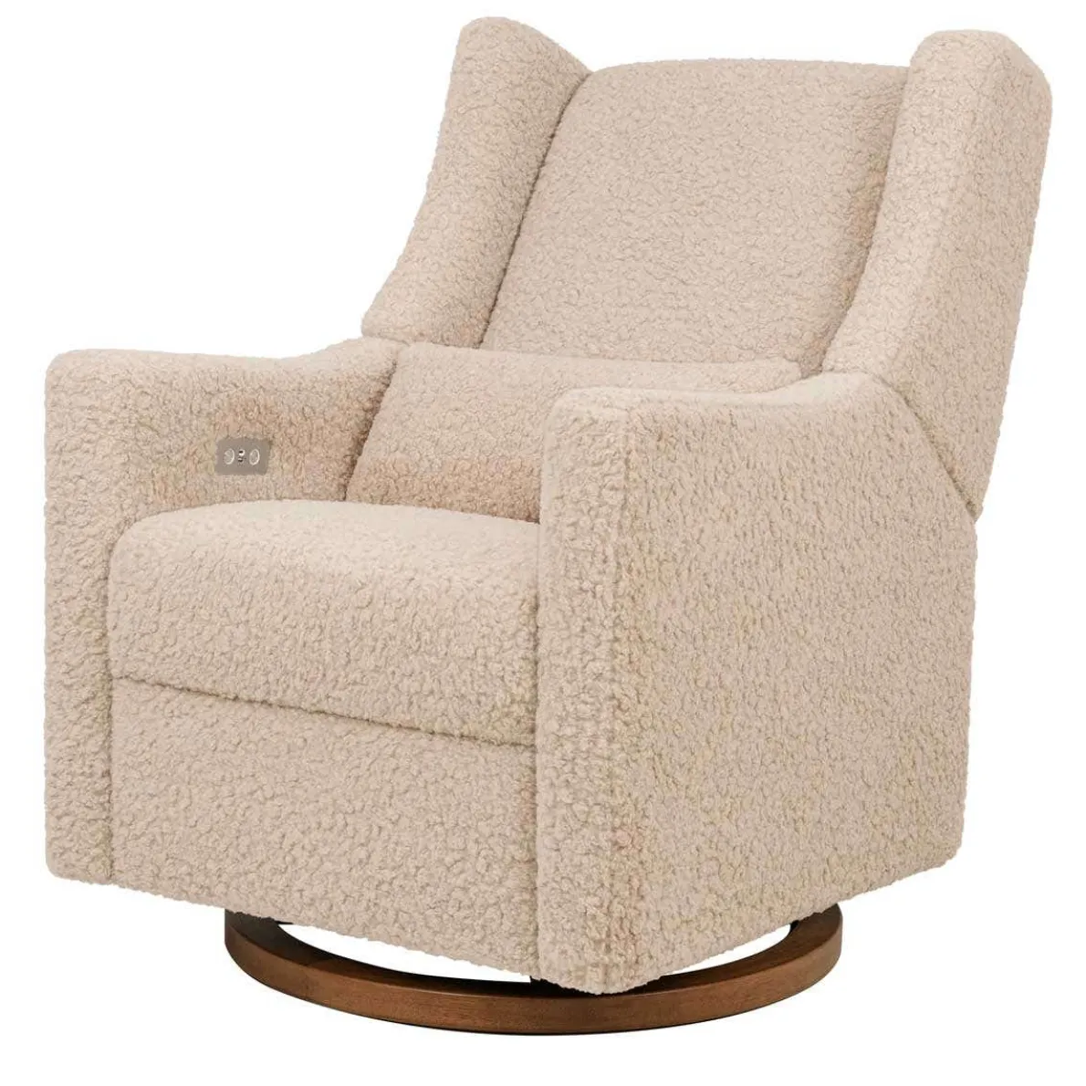 The Kiwi Glider Recliner takes the phrase “rest and recharge” to a whole new level with its built-in USB port, smooth swivel motion, and effortless back and forth gliding motion. Lean back and kick up your feet at the touch of a button with this recliner’s quiet electronic control button. It’s a stylish choice with a modern wingback design but also a more sustainable choice for your home. Upholstered by hand in eco-performance fabric, that is stain resistant, water repellent, and made with at least 30% recycled yarn.
