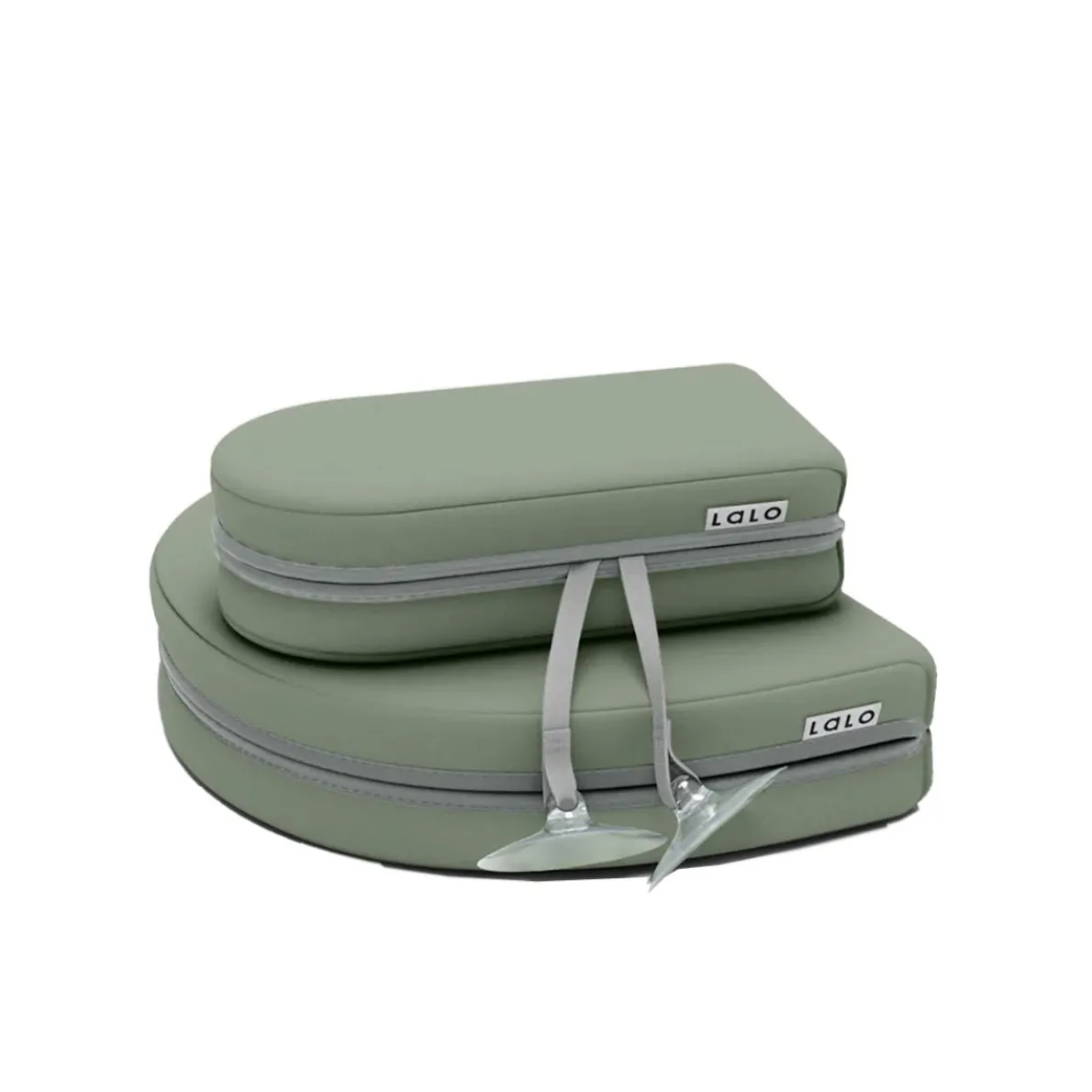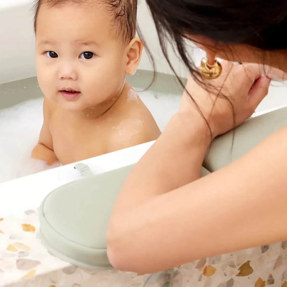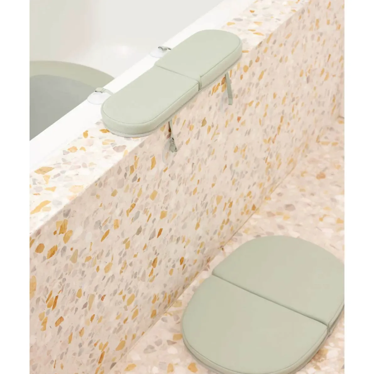 Make their bathtime more comfortable for you. The Knee &Elbow Saver is a set of foldable, padded cushions for support (and relief) on adult elbows and knees. Suctions to your bath for a more enjoyable play, rinse, and repeat.