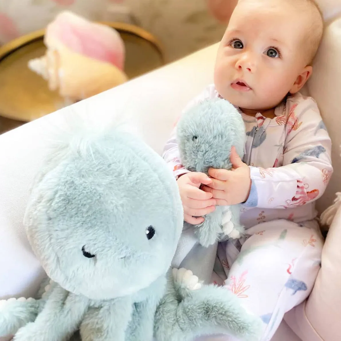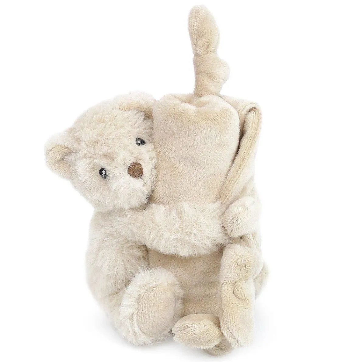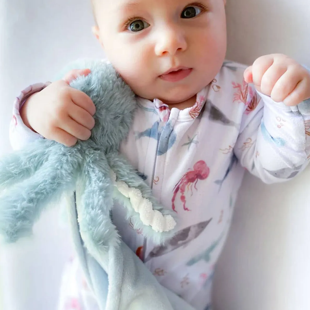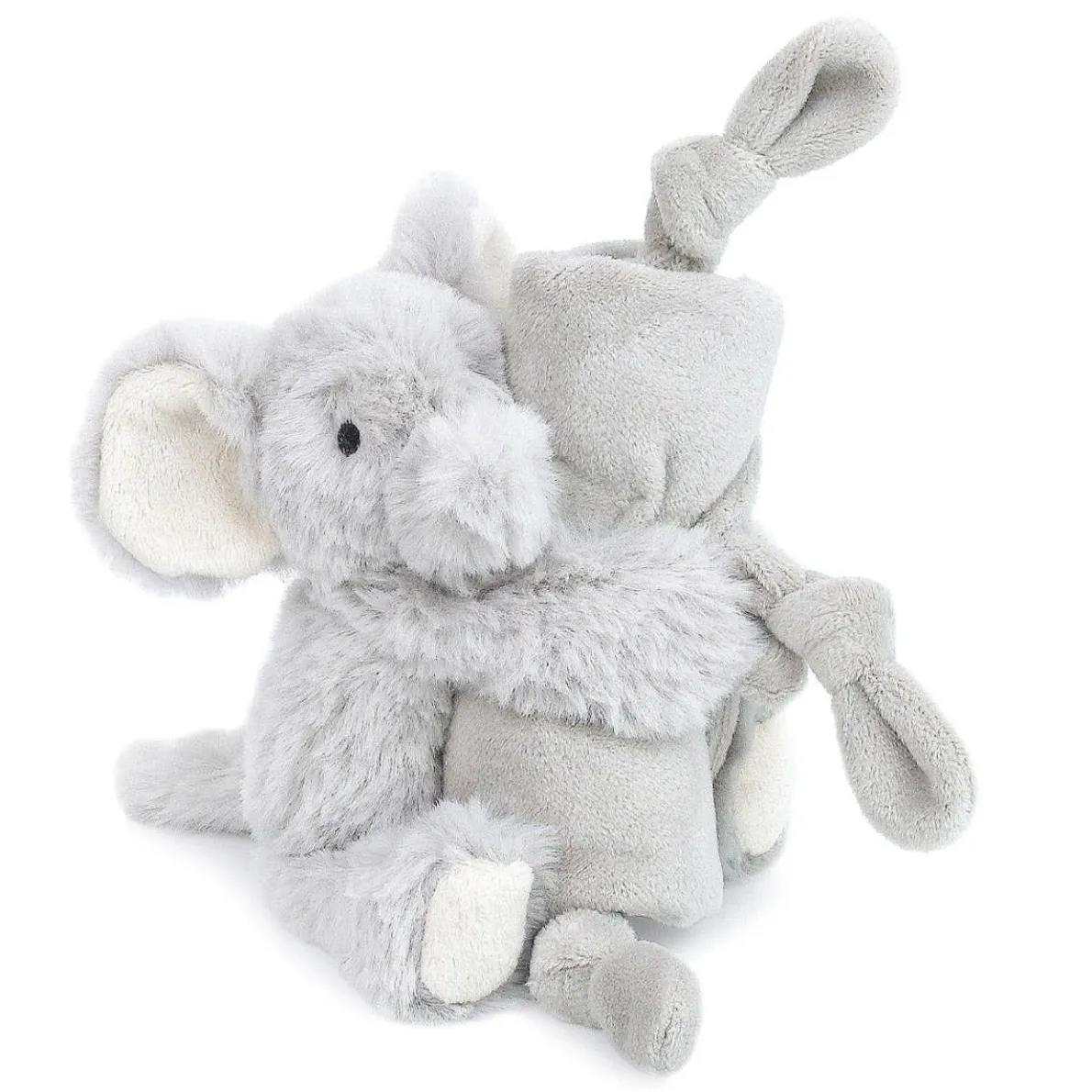 Super soft and cuddly, Mon Ami baby security blanket has a little plush friend attached to the corner for a snuggle buddy! Knotted fabric on three corners, babies love the tactile detail to help self-sooth.