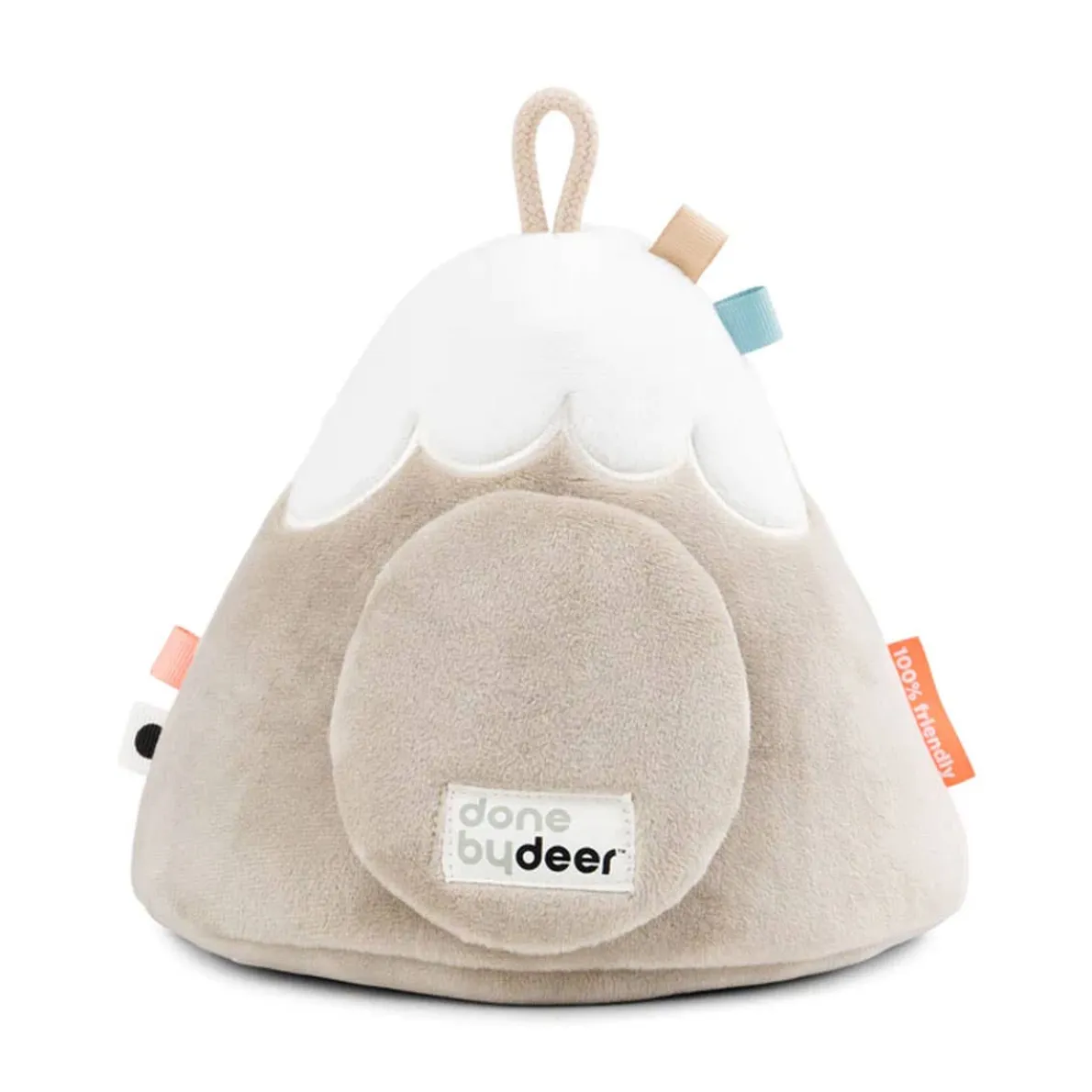 The Lalee hide & seek mountain will entertain toddlers while developing their concentration skills and hand-eye coordination. Little ones can feel the different textures, enjoy the sweet bells and discover the colourful tags.