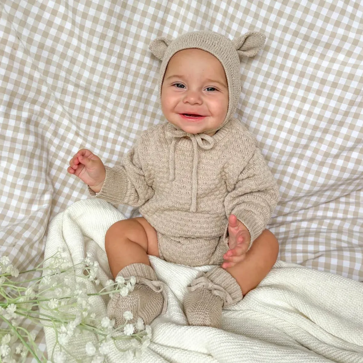 Blossom & Pear’s beautiful cosy bonnet is the perfect piece for your mini this season.