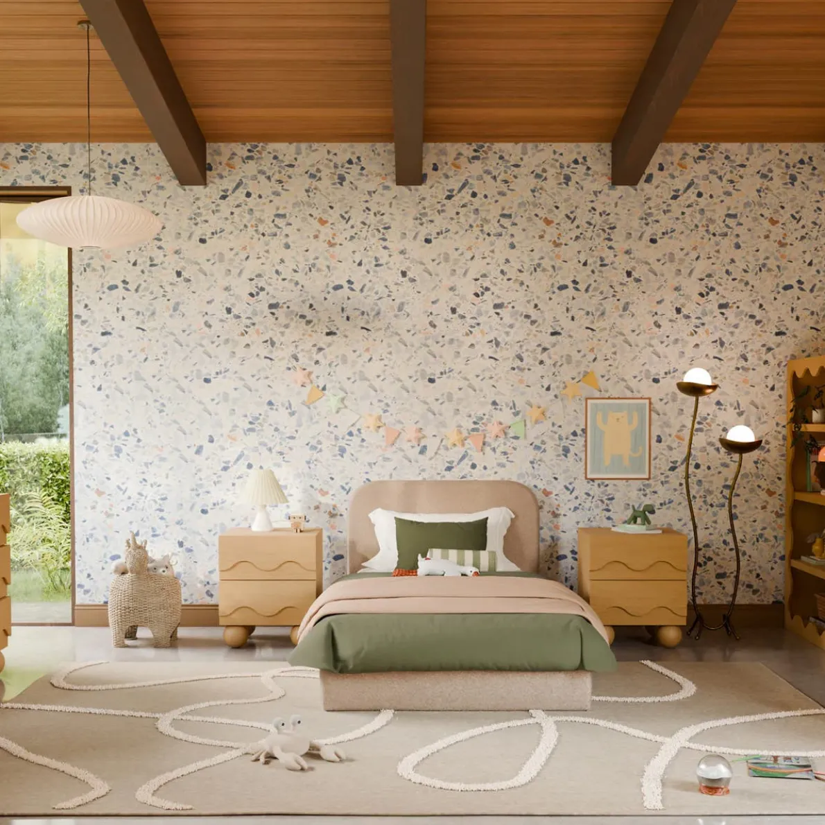 The Lido Wave Nightstand is full of personality, featuring wave detailing that cleverly hides the drawer pulls and sturdy ball feet that add a hint of playful charm. With two spacious drawers, it’s perfect for stashing bedtime treasures and everyday kids essentials giving them space to organize on their own. Compact and confident, it keeps your kiddo’s space tidy while adding a fun, mature vibe to their room.