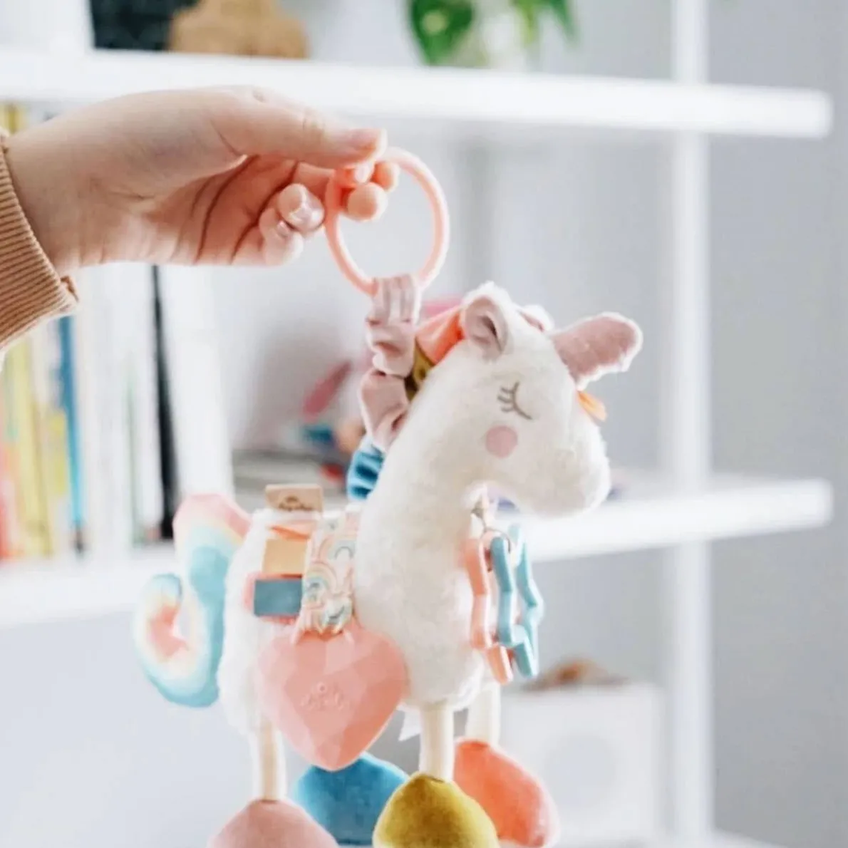 Featuring soft Sherpa fabric, ribbon, clinking rings and a textured silicone teether to help soothe sore gums the Itzy Friends Toy Collection Link & Love is your baby’s perfect playtime friend . Dangling legs keep baby entertained with their movement and the on-the-go link allows the Link & Love to easily attach to a stroller or car seat for endless entertainment!