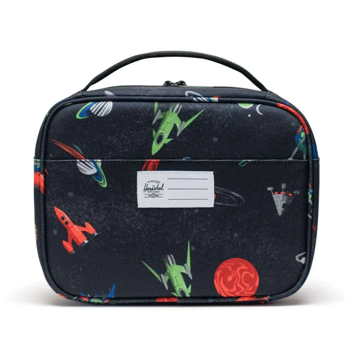 Their lunchtime companion. This durable lunch box holds snacks and sandwiches in an insulated main compartment that wipes clean. Bring it to a picnic or on journeys to the playground, cafeteria and beyond.