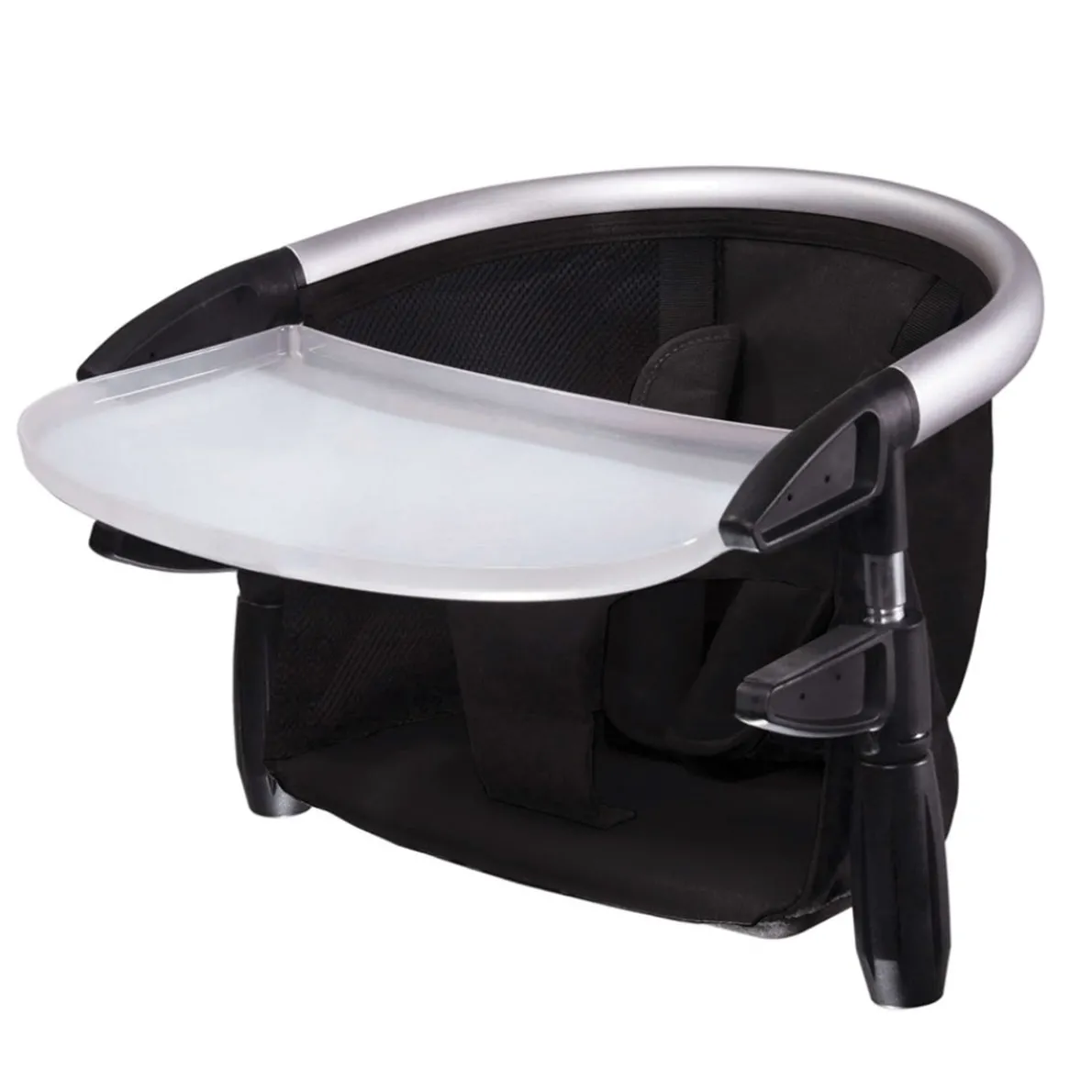 Get a taste of this! A smart & stylish portable high chair. The brushed stainless steel frame and robust, easy care fabrics are not only strong and durable but also visually appealing. Every lobster comes in a compact, custom fitted carry bag so that it can travel anywhere you need it. The wide, resilient food tray slides securely under the clamp grips to protect the table surface as well as keep your food surface clean.