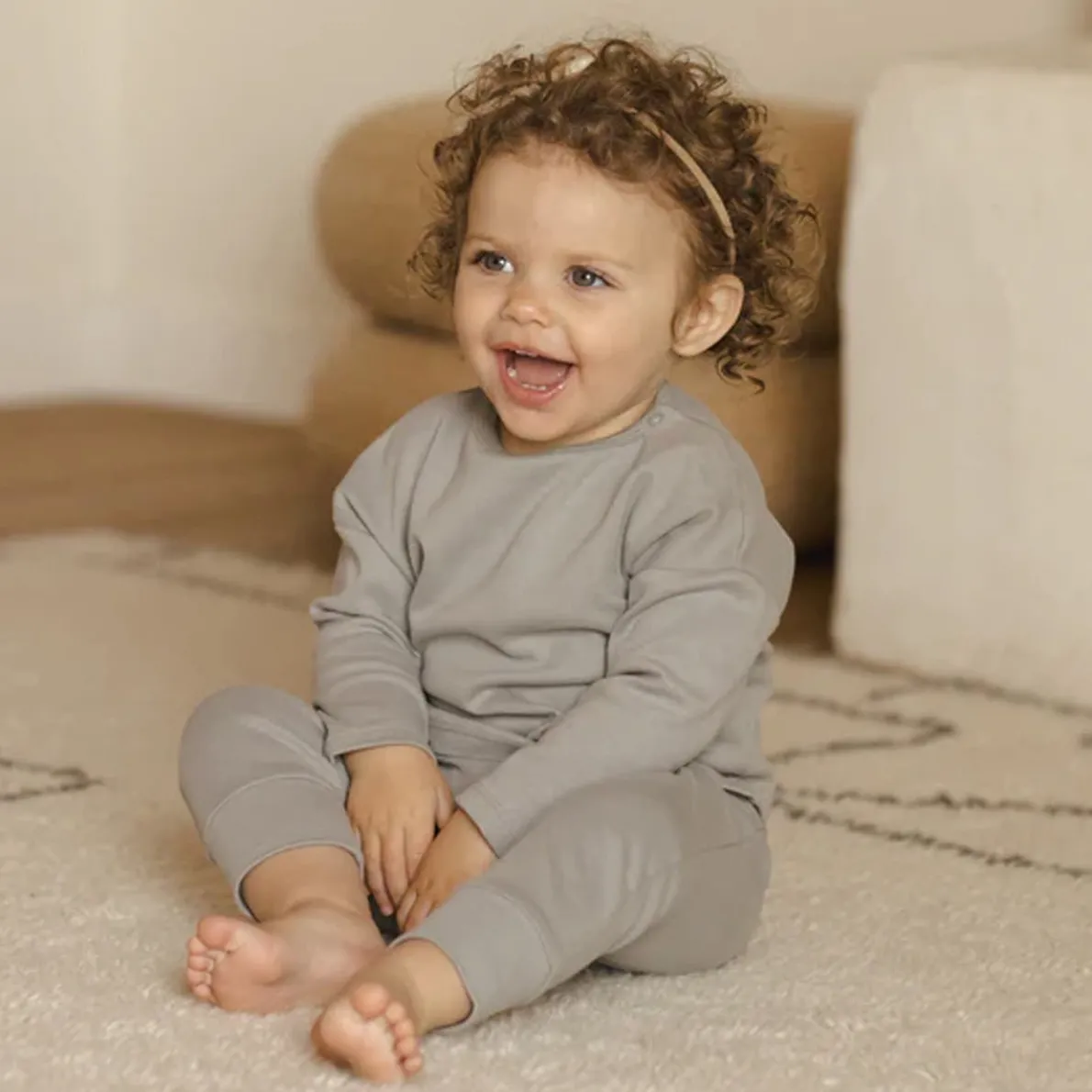 Long sleeve baby tee made of velvety soft organic brushed fabric. Sizes up to 18-24m have a snap at the shoulder for easy changing.