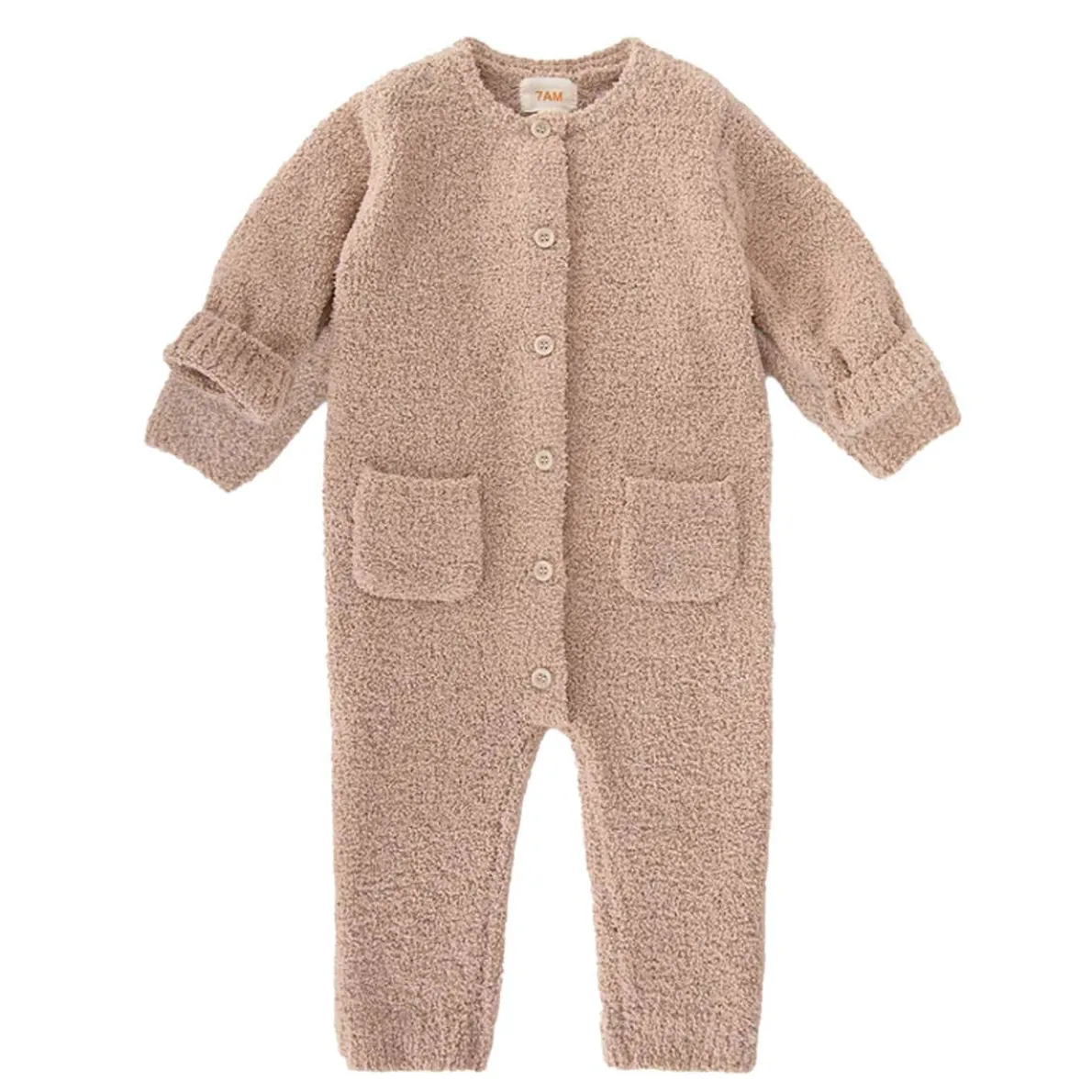 Cuddle up to this super soft &cozyone-pieceLong Sleeve Romper for baby!Crafted from 100% recycled materialsfor maximum lounge-ability and with center buttonsfor easy access to baby’s diaper―baby willnever want to take it off.Designed to stay close to body with itssoft fitted fuzzylookfortheutmostcomfort. If you’re looking for comfy, this jumpsuit is for you!