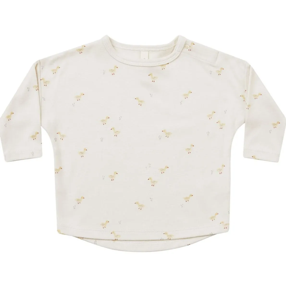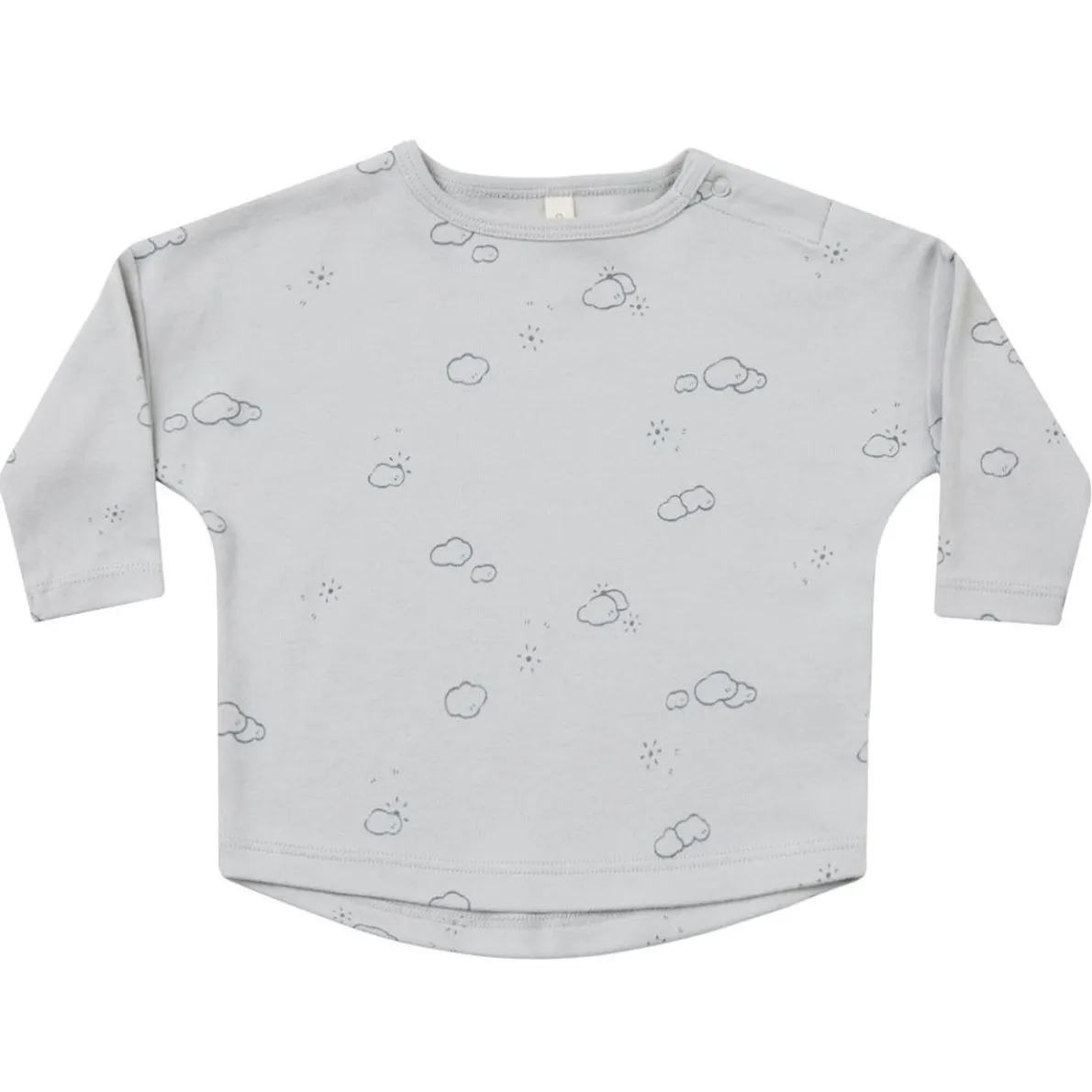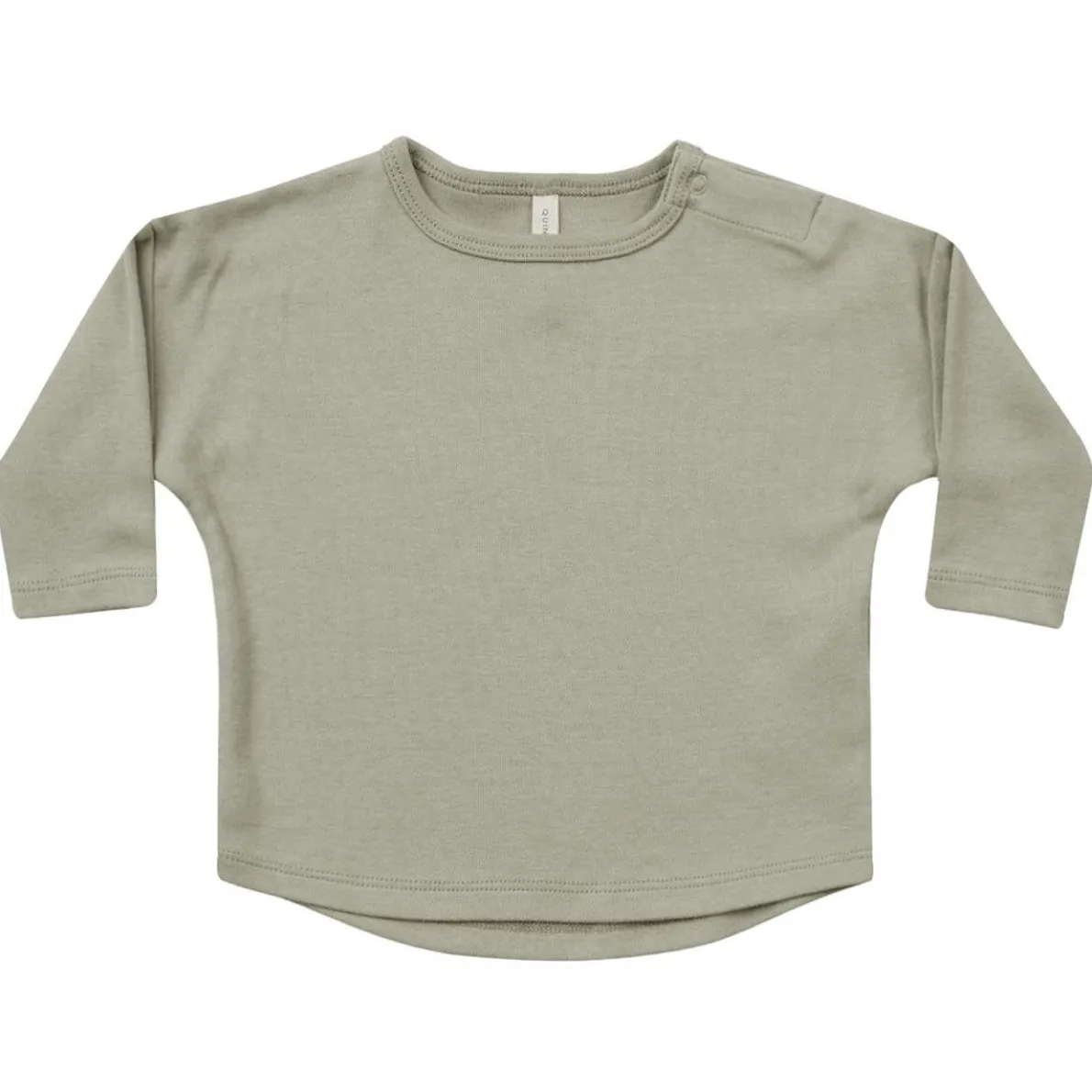 Long sleeve baby tee made of velvety soft organic brushed fabric. Sizes up to 18-24m have a snap at the shoulder for easy changing.