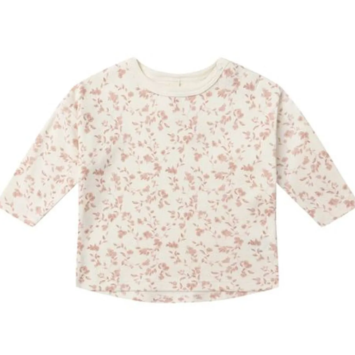 Quincy Mae Long Sleeve Tee is crafted from soft organic brushed cotton for all-day comfort. Featuring a shoulder snap on sizes 0-3M – 18-24M for easy wear. Pair with the Drawstring Pants for a cozy, coordinated look.