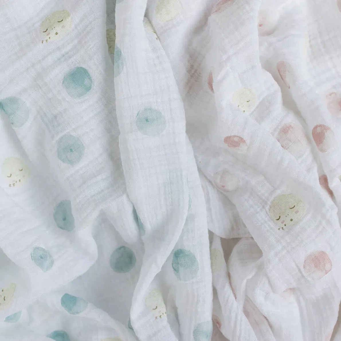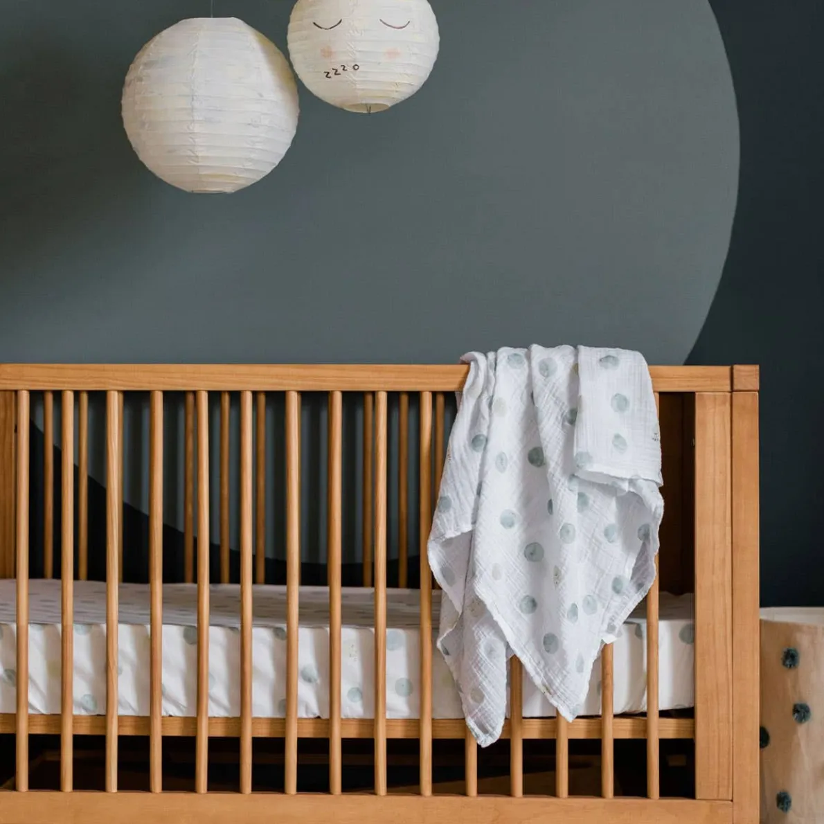 With sleepy eyes and tiny yawns, the gentle moon sets for the night. In a soothing watercolor palette amidst a sky of soft blues and pinks comes Luna. From dusk ‘til dawn, dreamland awaits under the care of Pehrs finest organic cotton Crib Sheets, Sleep Bags and Swaddles.
