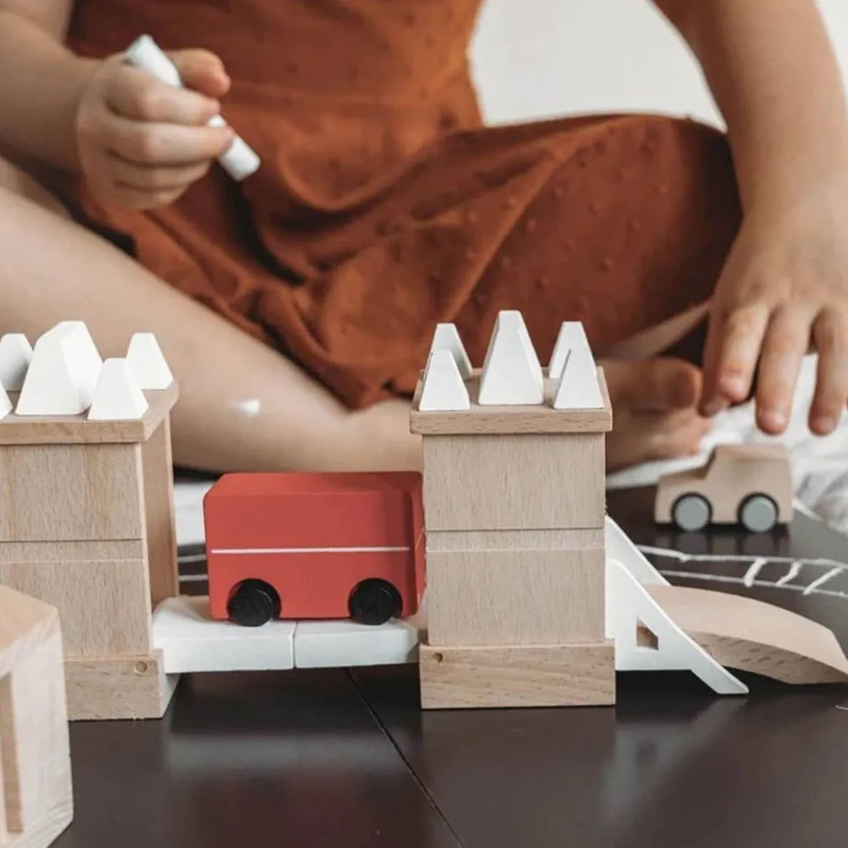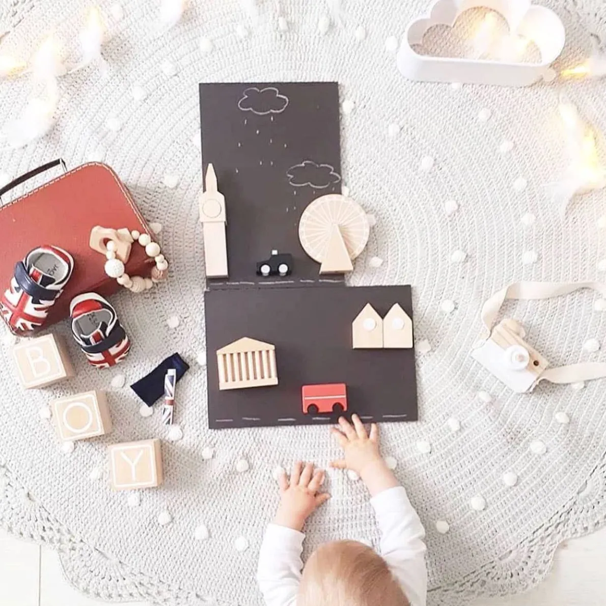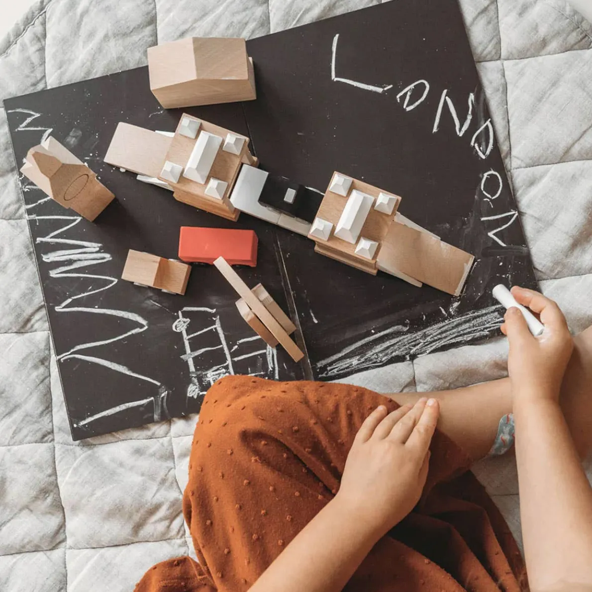 The freshly designed Machi Town series by Kiko + GG is everything a Child needs in a toy. The Machi is available in two of the most famous towns of the world – London and New York. Pieces are inset with magnets which allow parts to be attached to the base plate where you can then use the chalk to draw anything you like.