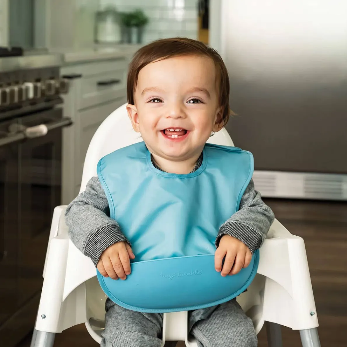 Tiny Twinkles Silicone Pocket Bibs feature a unique catch-all pocket made from 100% food grade silicone! These bibs are the best way to protect from messes and keep baby comfortable during mealtime! For ages 6 months and up.
