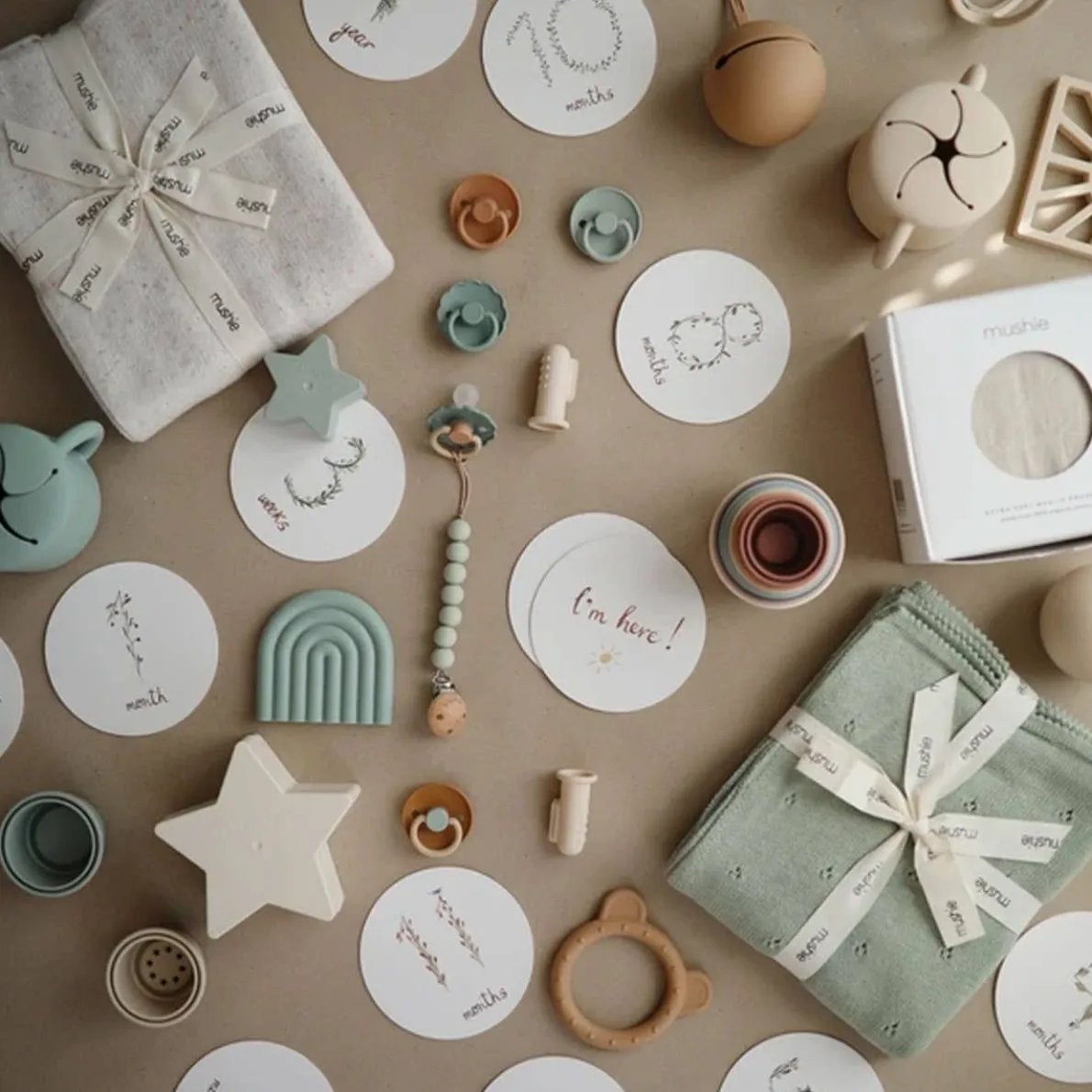 Document the growth of your new baby with this set of 16 beautifully-illustrated milestone cards, lovingly designed in Sweden. Each double-sided card displays whimsical watercolor designs and dedicated space for you to capture memories, thoughts, and notes to your baby as they grow.