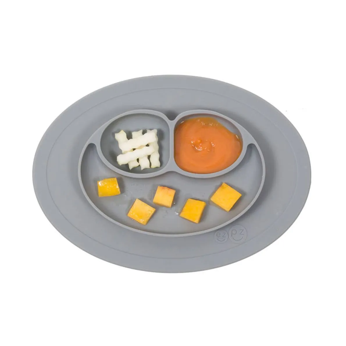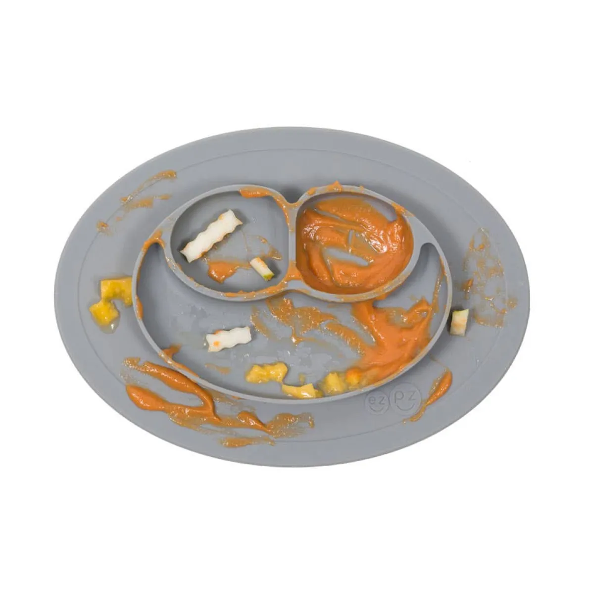 The Mini Mat. ezpz’s solution for infants and travel.Like all of ezpz’s products, the Mini Mat is an all-in-one placemat + plate thatsuctionsto the table. The mat is made from 100% food-grade silicone that isBPA, PVC and phthalate free.Designed for infants / toddlers 4+ months.
