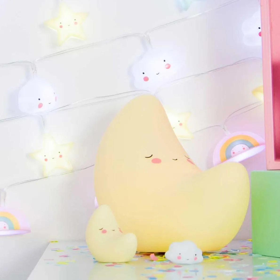 Super cute mini moon light! These eco-friendly lights are child safe and made from BPA- and lead-free PVC; and give a soft glow when turned on. You can choose to put the light on, off or on timer. When you switch the timer on, the light turns off automatically after 15 minutes. This saves battery power and is better for the environment! We advise you to use this timer, because the included batteries last for about 20 hours.