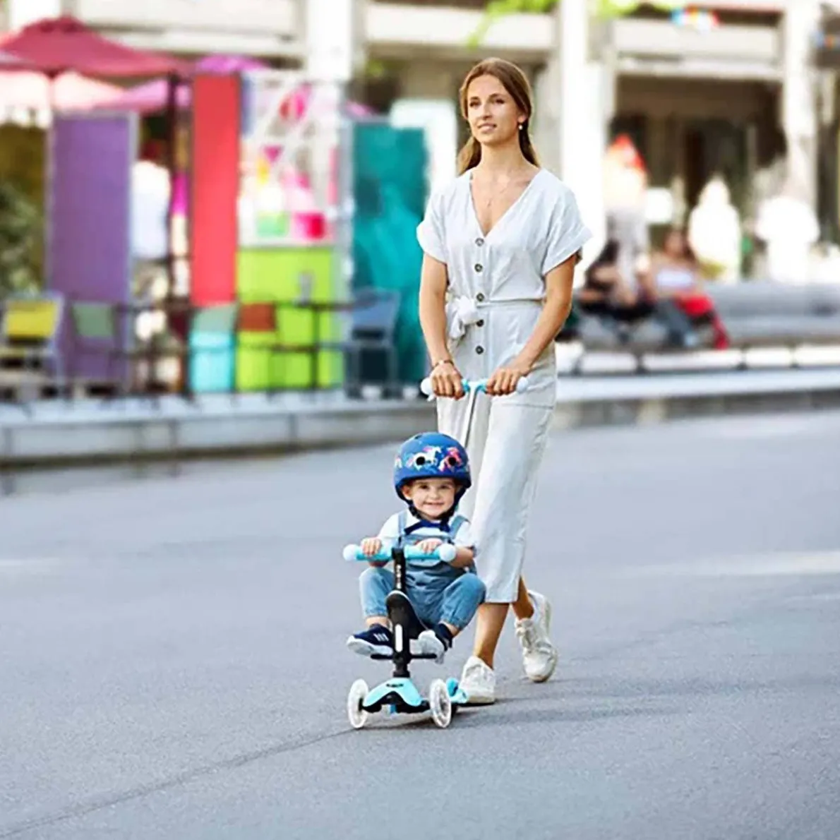 From their first step to their first days at school, the Mini2Grow Deluxe Magic LED is the perfect companion for the first years of your child’s life that adapts as they grow. Thanks to its multi-functionality, it can be used from the age of twelve months and will accompany your child up to the age of five years. It’s an innovative, ergonomic all-in-one scooter that can be used in different variations: