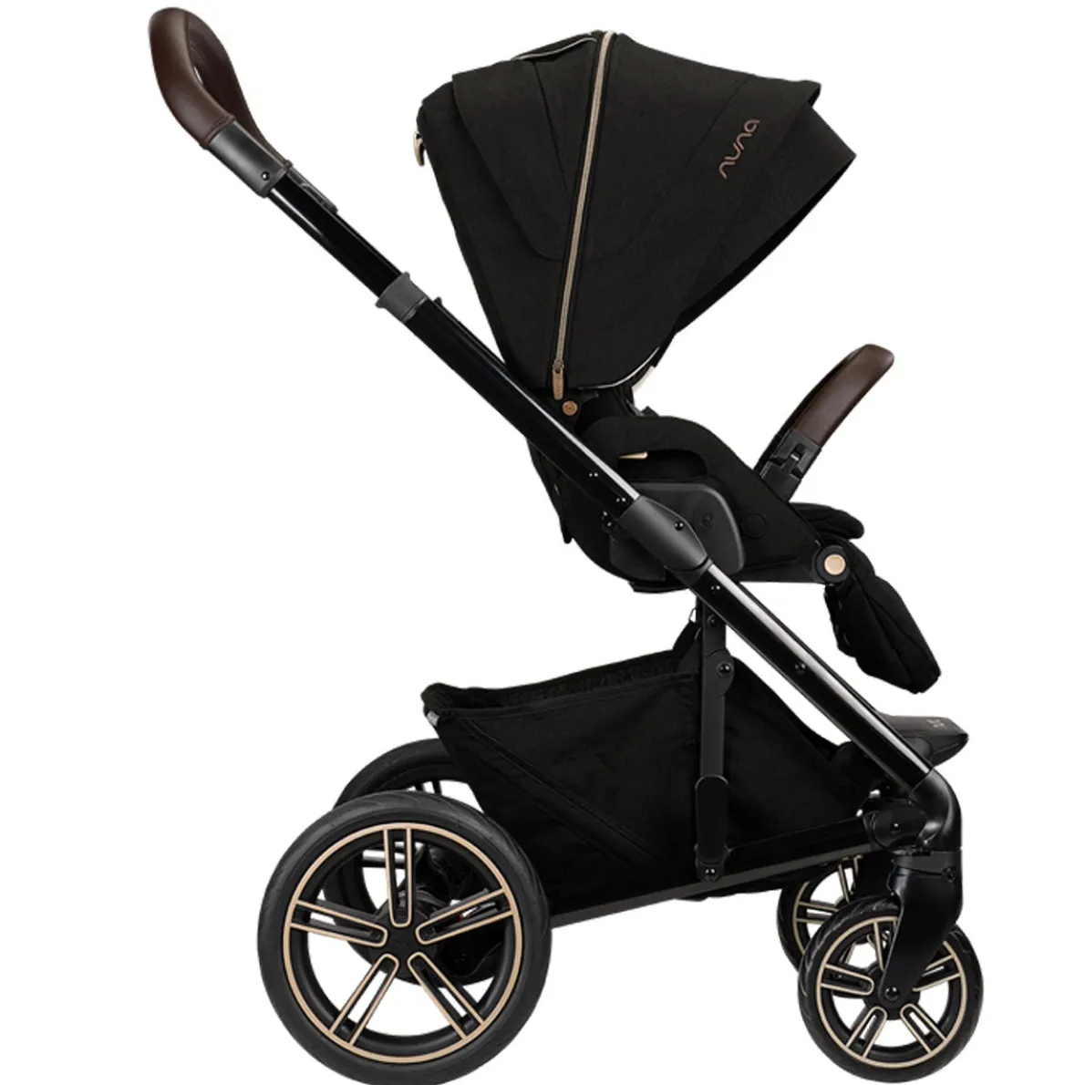 Nuna has elevated their vision and redefined classic style by including bold metals in this new fashion line. With the perfect balance of lustrous shine, Riveted radiates an overall luxurious expression. The Riveted style strikes a balance between hard and soft, edgy and sweet. They’ve coupled deep neutral colours with accent splashes, adding bronze and copper notes to lend unique signatures to a timeless fashion. Rich textures add depth to this luxurious collection. A glossy black outline and hints of copper give fluid motion to the Riveted style. Premium, bronze metallic YKK™ zippers, snaps, and rivets accent the tailored style of the Riveted line. To top things off, a soft, chocolate brown vegan leather incorporates a touch of warmth.