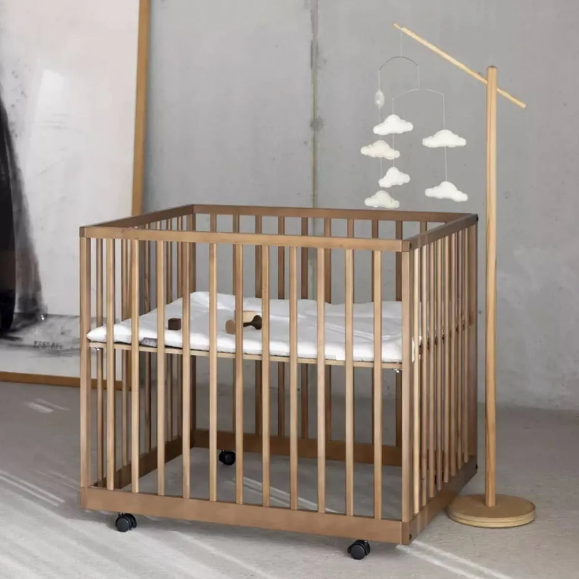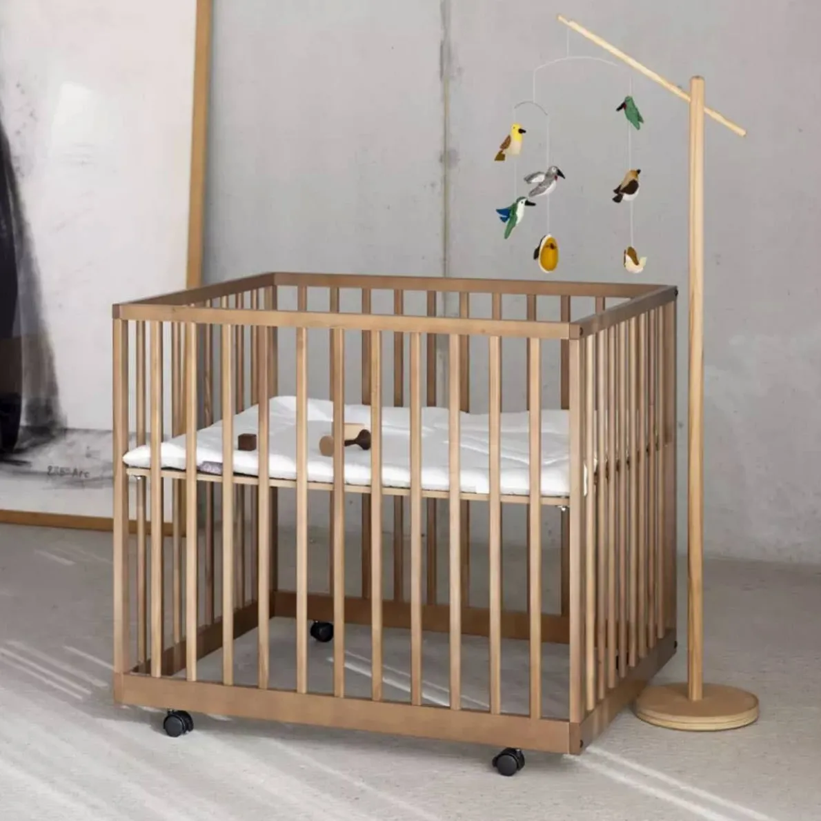 With the Wooden Stand – Mobile, add a touch of magic and wonder to your little one’s world. This enchanting wooden stand makes it easy to attach a mobile (sold with the stand), taking your child on a journey filled with dreams and imagination. Assembly is a breeze, allowing you to easily place the stand on a crib, playpen, high chair, and more. This provides your little one with extra entertainment, adding a touch of romance to quiet moments. For a complete sensory experience, combine the mobile with theWooden Mobile Music Box (ref. 76YSA0101), which can be easily attached to the wooden stand. This fills the room with soothing sounds, such as nature sounds and gentle melodies. This wooden stand is crafted from high-quality birch and poplar plywood, ensuring durability and safety for your child. It complies with safety standards EN 71-1:2014 and EN 71-2/3+A1:2014.