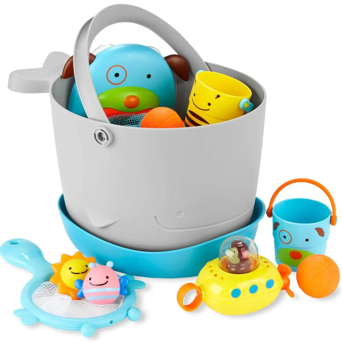 - ZOO® Tub Toys include: Bathtime Basketball, Pull & Go Submarine, Scoop & Catch Squirties, Stack & Pour Buckets