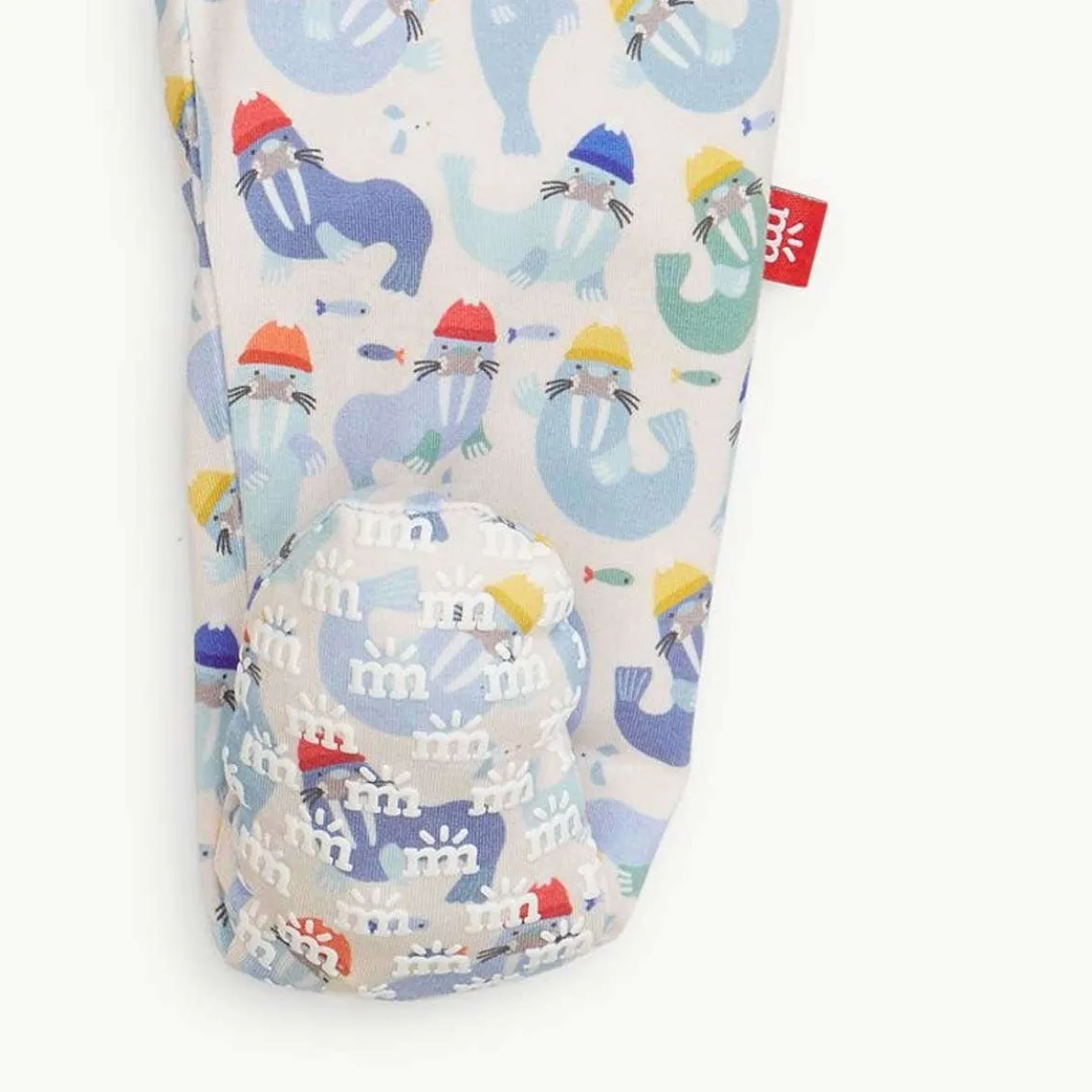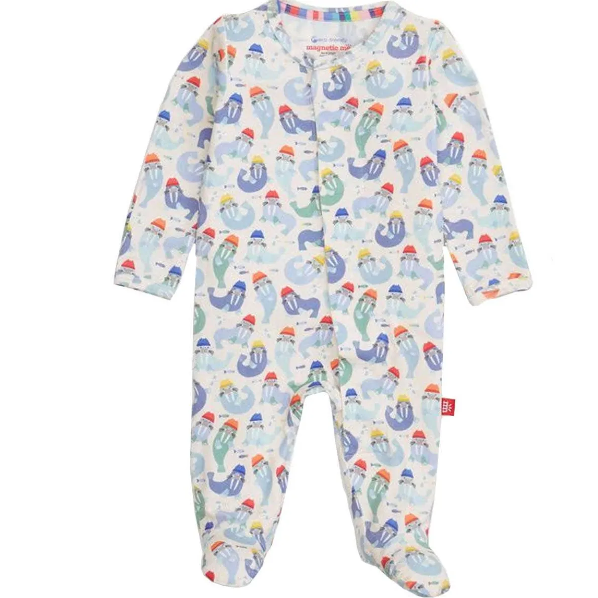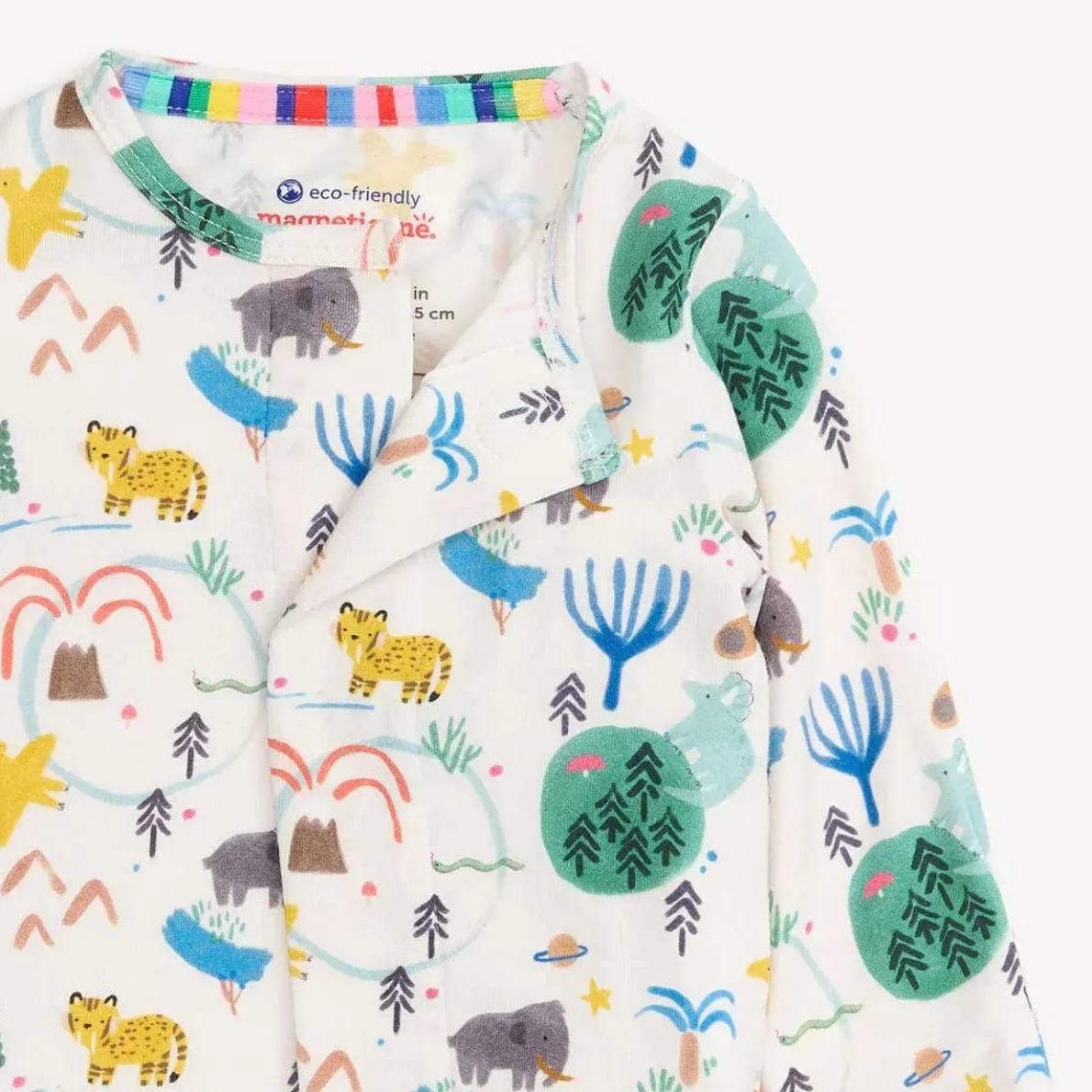 Magnetic closures make for quick, easy dressing and diaper changes. SewSafe™ guarantees magnets are safely sealed and stitched inside a pouch, then between multiple layers of fabric, making them completely inaccessible to children.