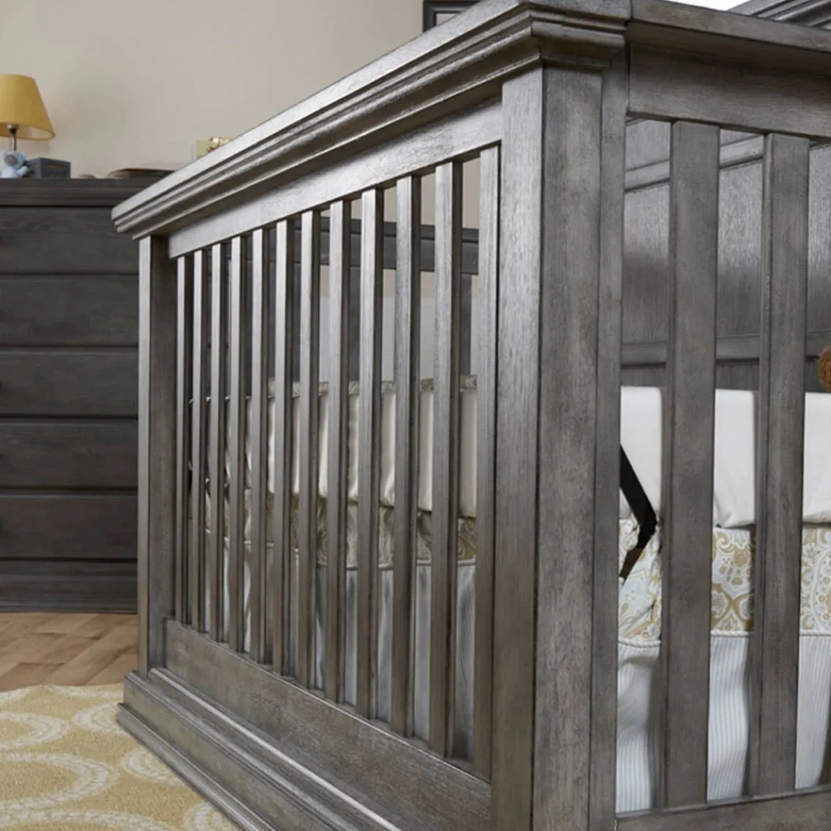 The Modena Collection has been designed to be artistically delightful as well as true to Pali’s commitment to both quality and safety. The Modena Forever Crib is crafted from sustainable wood and then finished with finishes that are regularly tested to ensure that they exceed the required standards for lead. This collection is complimented by a textured finish that is reminiscent of an antique style. It is available in Granite, a distressed gray finish, and Vintage White, a finish that is predominately white with grey highlights. Both of these finishes are lovely compliments to the traditional styling of the Modena Collection.