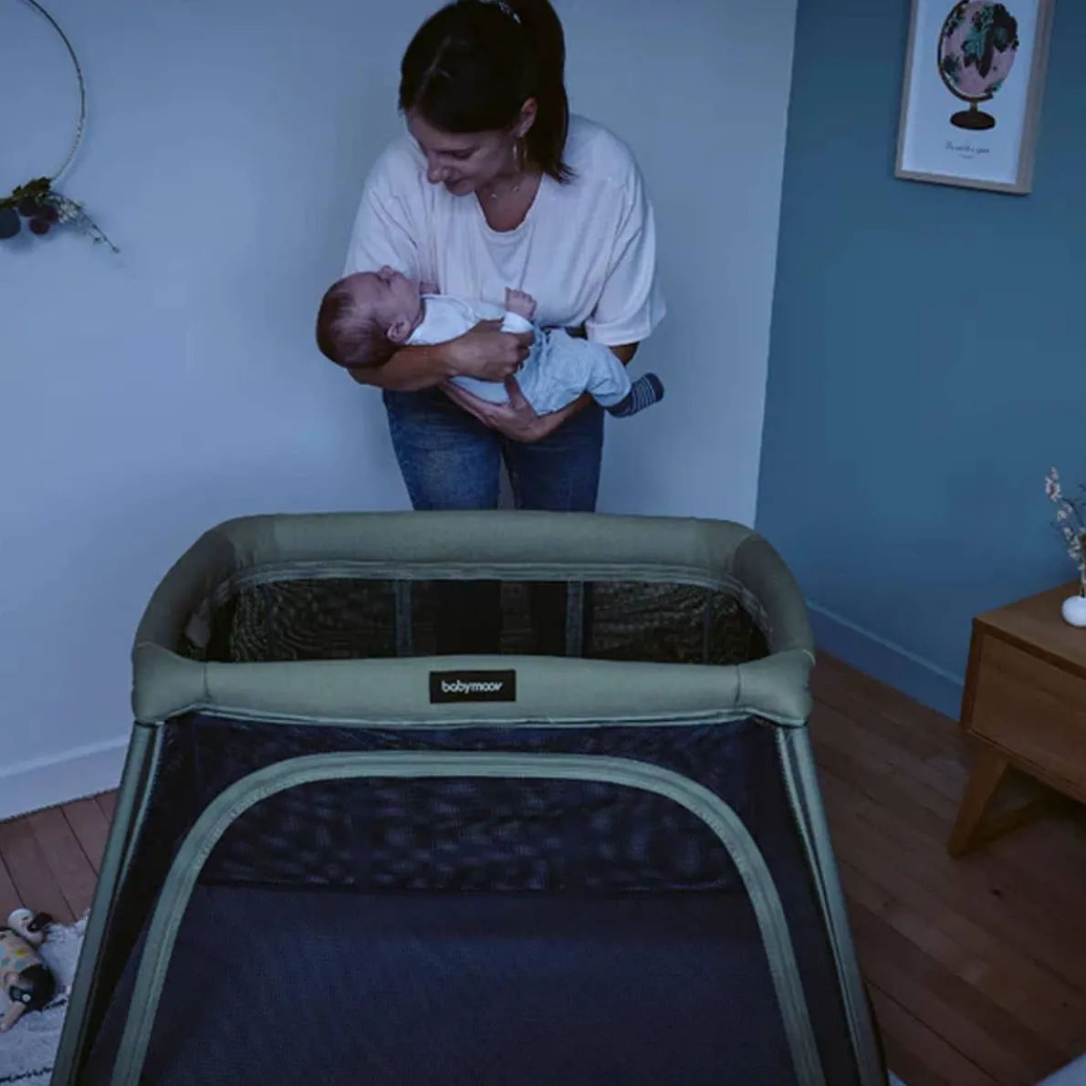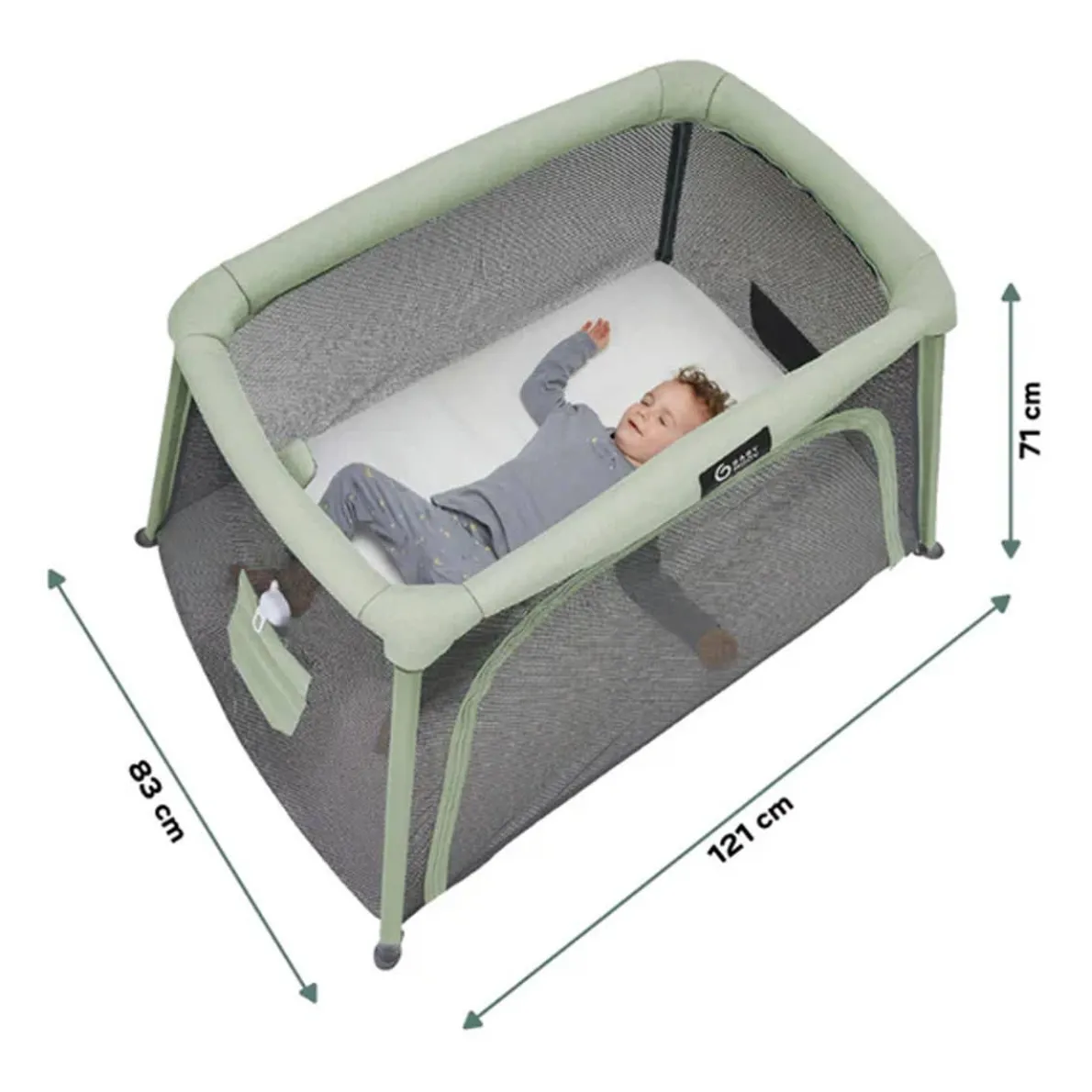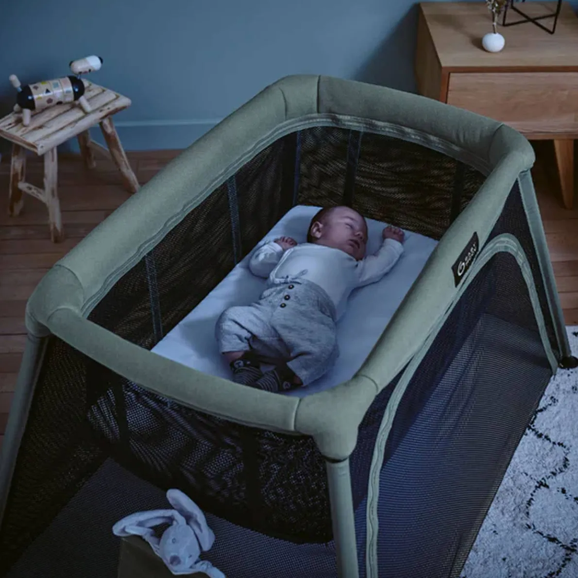 - 3-in-1 travel cot: baby crib (or use until the child can sit up, kneel up or stand up unaided), travel cot and play pen