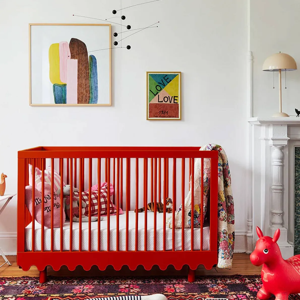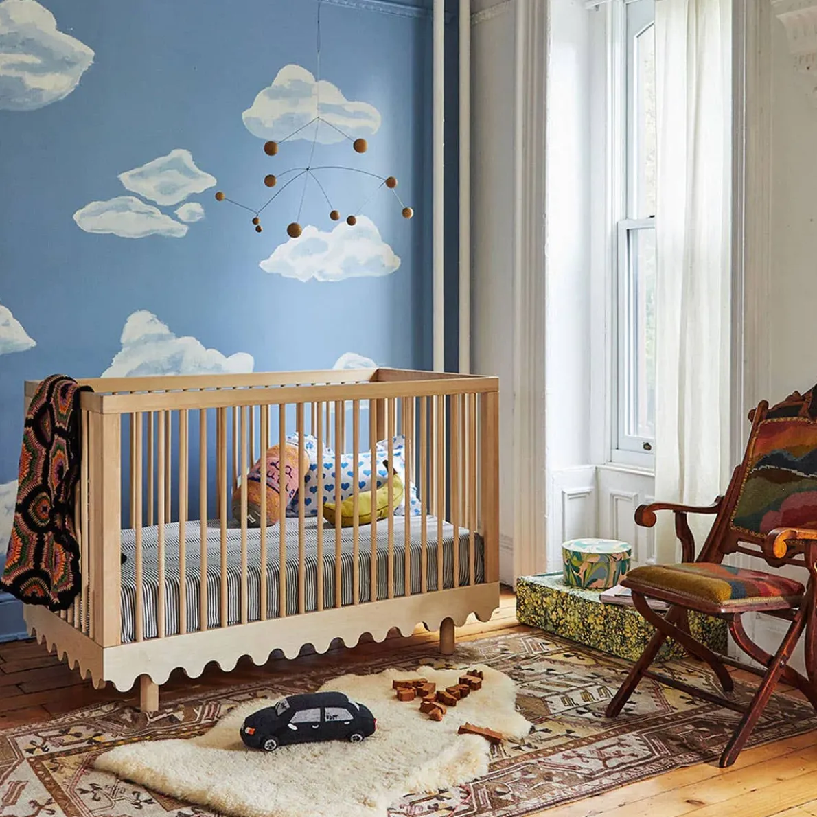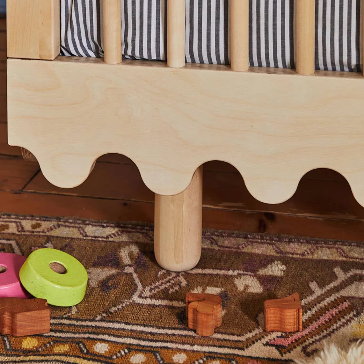 An ode to playfulness in furniture form. The Oeuf Moss Crib features a bold-yet-simple wave motif that’s an instant statement in any nursery, whether minimalist or maximalist. All four sides of the crib feature open & airy round spindles.