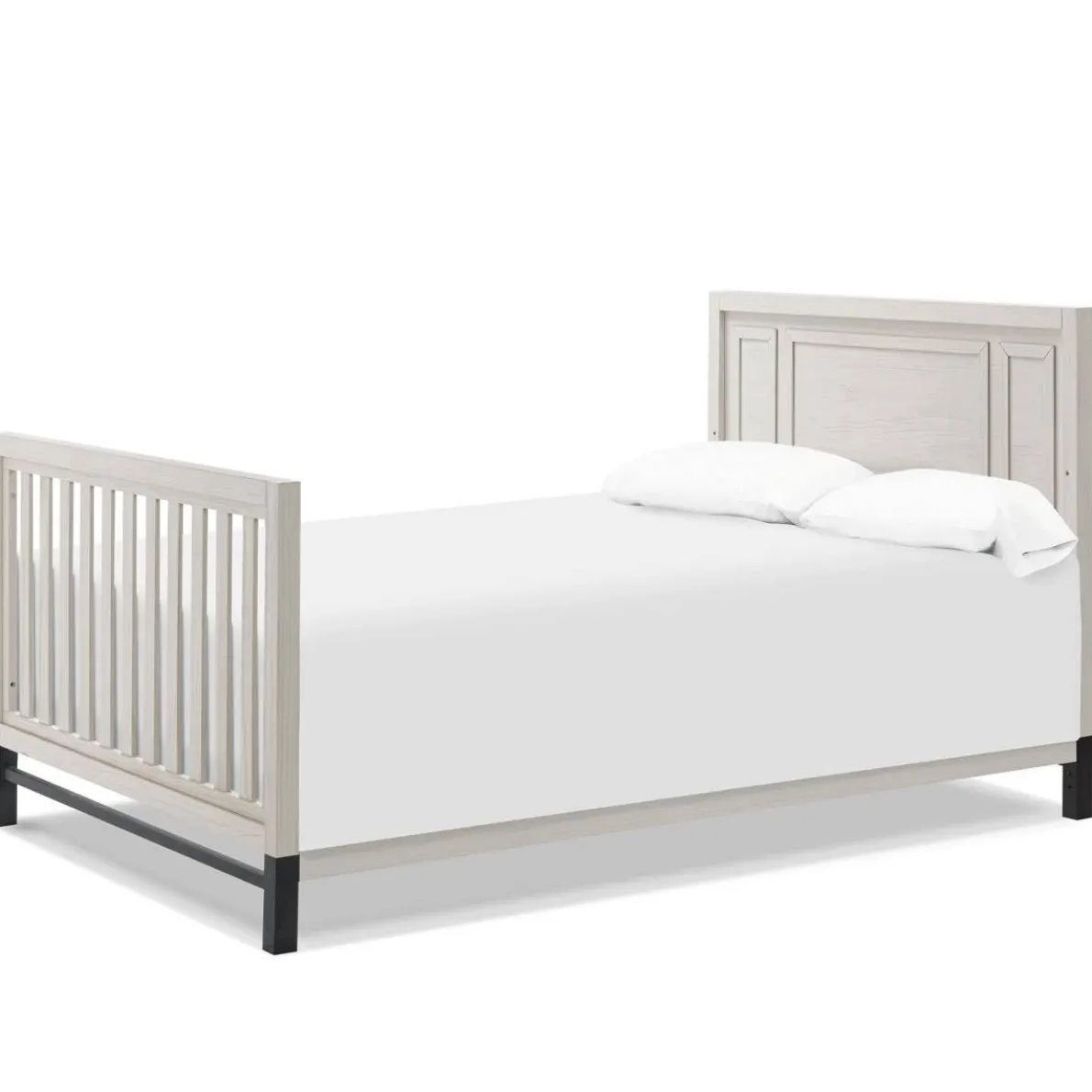 Lean into the modern farmhouse aesthetic with the Newbern 4-in-1 Convertible Crib. Featuring beautifully textured finish, streamlined metal base and contemporary trim details, this crib will perfectly complement your home. Built to seamlessly transition from newborn to toddler, the crib has four different mattress heights and easily converts to a toddler bed, daybed and full-size bed. Complete your nursery with the Newbern 6-Drawer Dresser.
