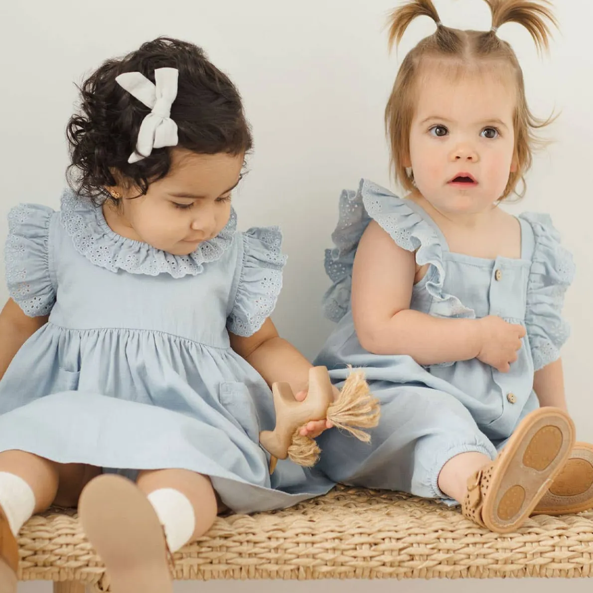 Featuring ‘chambray’ fabric. Welcome blue skies in this summery style.