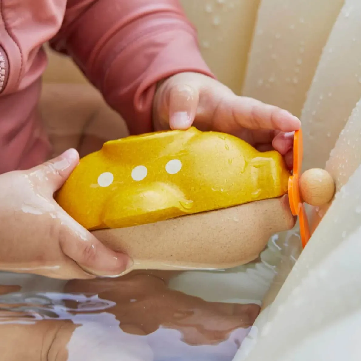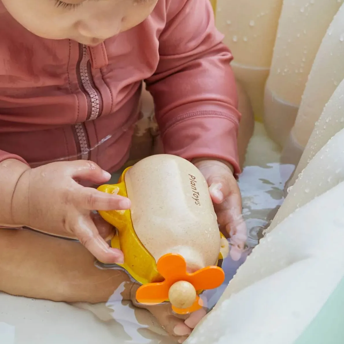 Dive deep and explore the depths of waterplay with the PlanToys Ocean Submarine. This fully-sealed sub floats and comes equipped with a spinning natural rubber propeller.