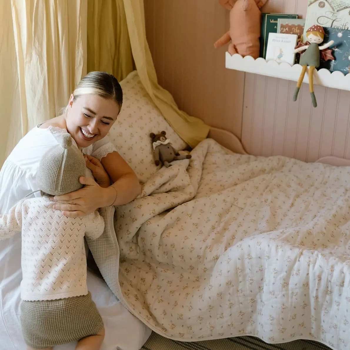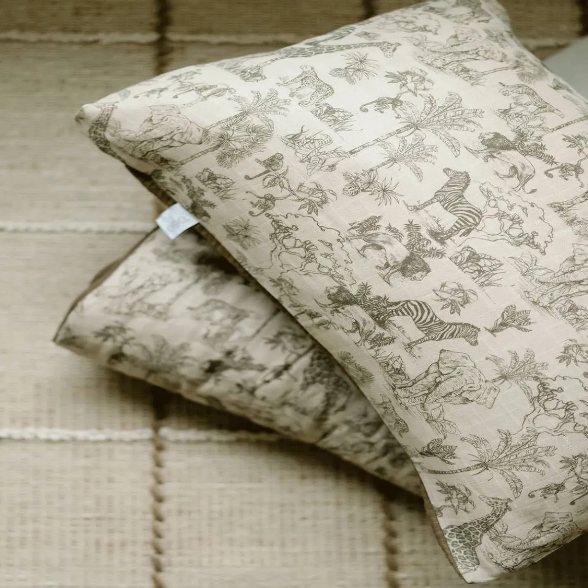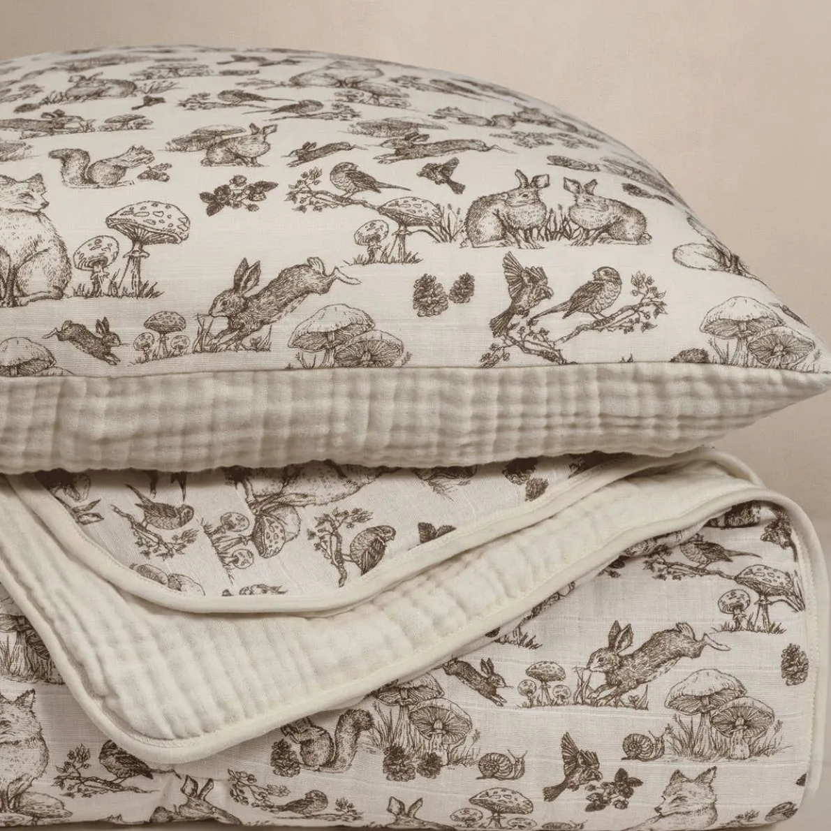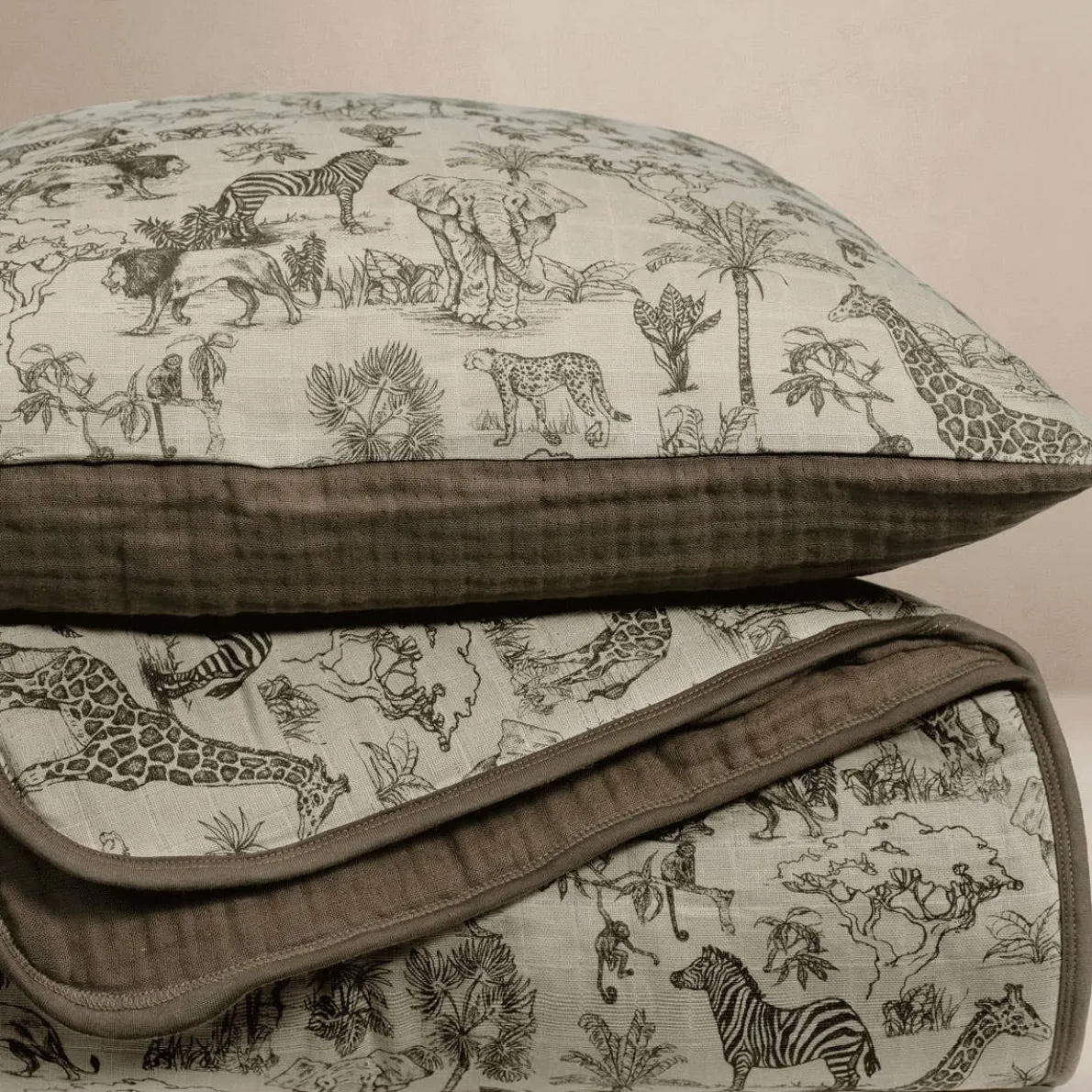 This luxurious muslin sham is crafted from organically grown 5-layers of premium 4-way organic cotton muslin. Beautiful muslin print on one side, and 4 layers of solid color muslin on the other side. Woven with the utmost care using the finest yarn, this results in a wonderfully textured fabric that’s exquisitely soft to the touch and remarkably lightweight, all while maintaining its lasting strength.
