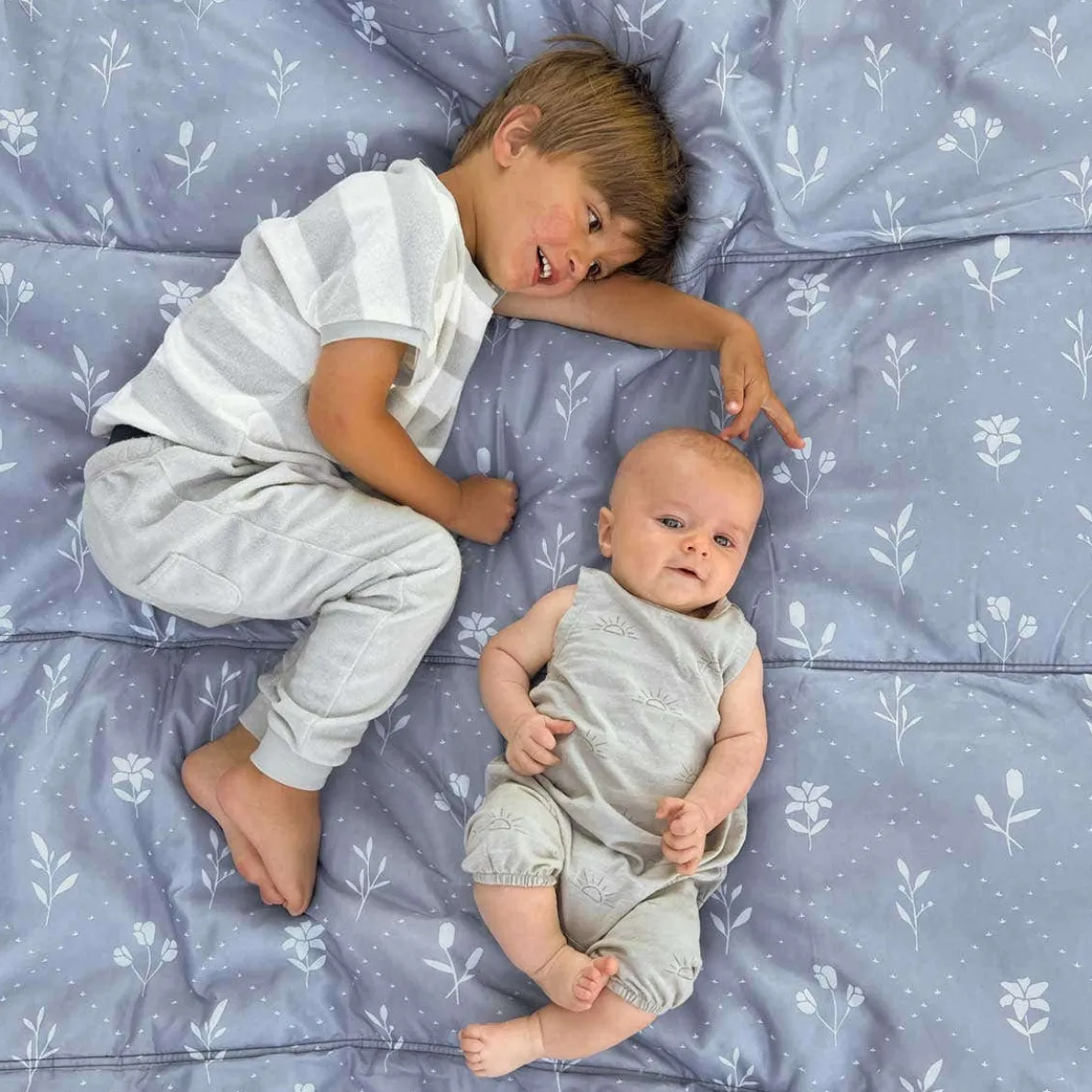 Little Unicorns mid-size blanket boasts a larger footprint for both outdoor and indoor adventures. Take it to the beach or for a picnic lunch, even lay it under a sensory bin for mess-free play. Wipeable, water-resistant fabric makes for quick cleanups and the easy fold makes set up and pack up effortless. This blanket deserves to go everywhere with you!