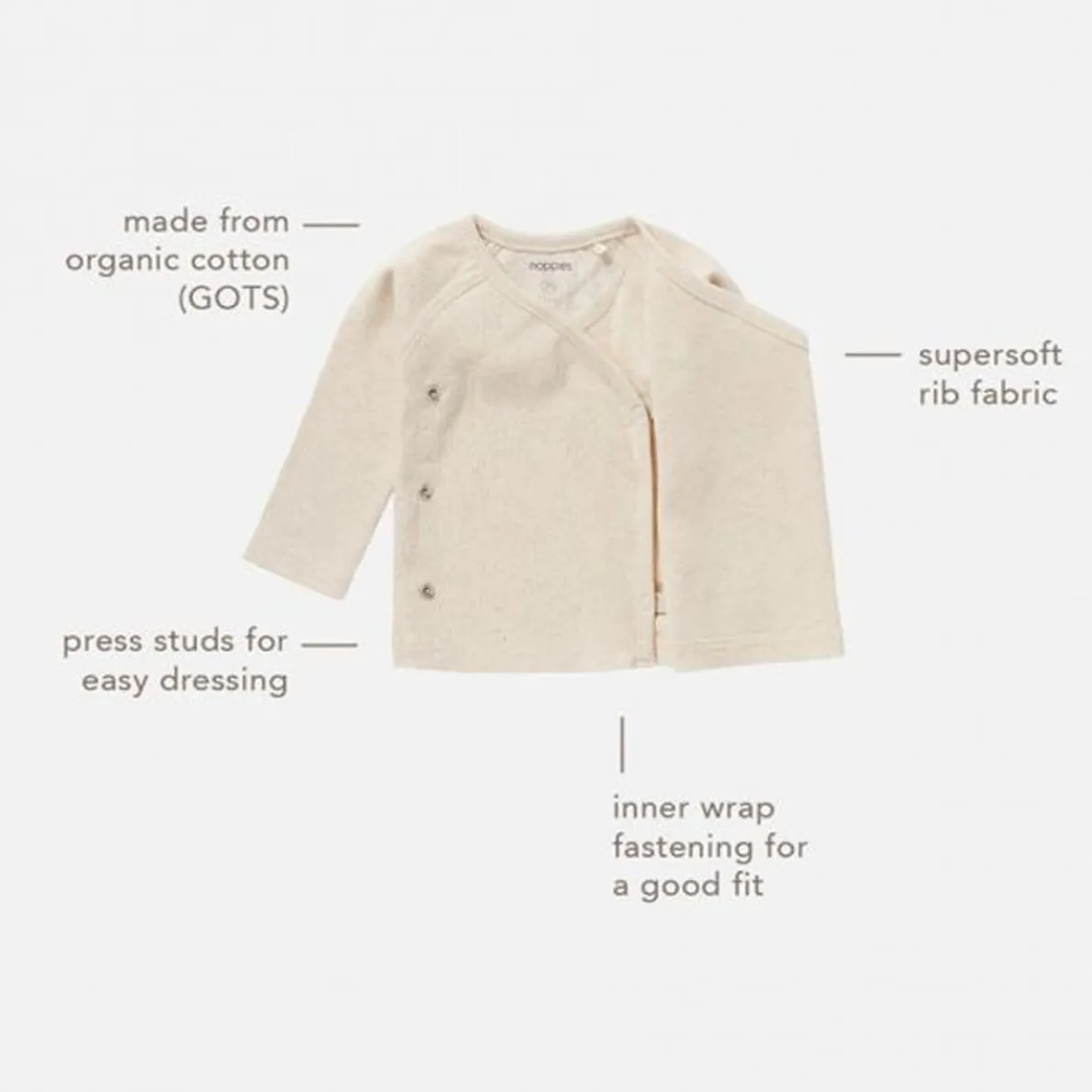 Getting dressed and undressed can be pretty stressful for a baby, so a wrapover top is absolutely ideal. This top from the Noppies Baby collection doesn’t need to be pulled over your little one’s head, thanks to the handy press studs. The Nanyuki wrapover top is made from ribbed fabric and features long sleeves. This top is available in a range of different colours. Perfect for combining with the matching trousers and hat. This wrapover top is made from GOTS-certified organic cotton. Not just super soft for your baby, but it also meets high international production and environmental standards.