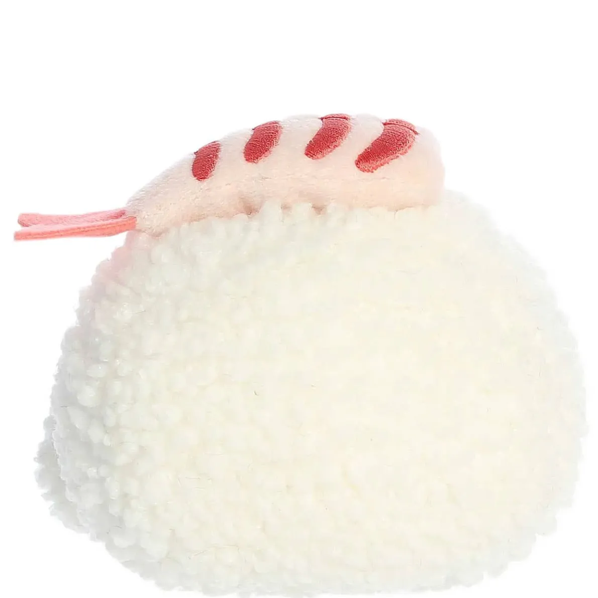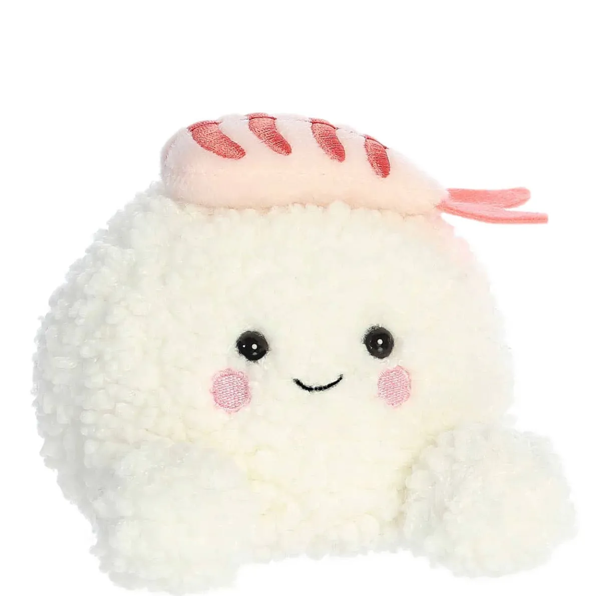 Ebi Shrimp Sushi is a charming plush with a textured, creamy body reminiscent of rice and a soft pink topping that captures the look of shrimp. His gentle eyes and warm smile invite you to share in his love for fine food.