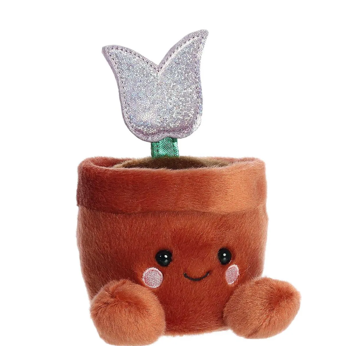 Holland Potted Tulip is an adorable plush toy with a rich, brown pot as his base, supporting a sparkling, white tulip that seems to glimmer with life. His face has sparkling eyes and a warm, welcoming smile that invites everyone to share in his sunny disposition.