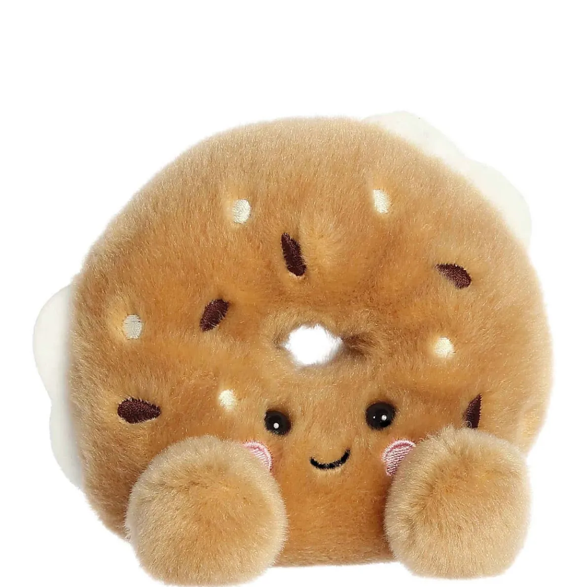 Tony Everything Bagel is a plush delight, complete with a variety of “seeds” and “spices” sprinkled over his soft, doughy body, representing his eclectic taste. His bright, eager eyes and a wide, welcoming smile invite all to join in his culinary adventures.