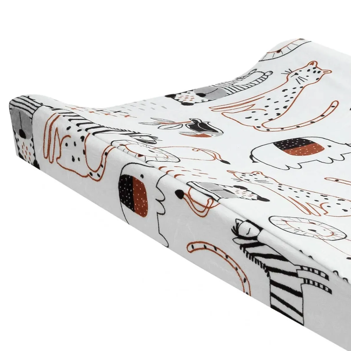 A soft minky changing pad cover is perfect for changing your little baby. It is soft and cozy and features all of friendly jungle/safari animals. There are buttonholes for the changing pad straps so your little one is safe and secure while getting their diaper changed. It is machine washable for easy care.