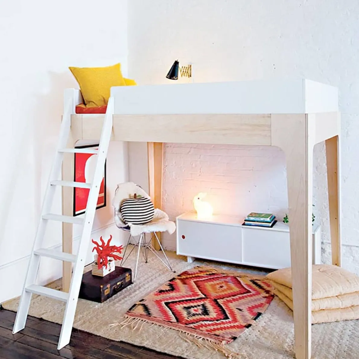 From the coziest brownstone to the most generous of ramblers, The Perch Full Size Loft Bed is transforming bedrooms with its space-saving floor plan and durable, practical good looks. The kid-friendly ladder angle makes for easy climbing, and a safety wall around the top helps kids (and parents) sleep tight.