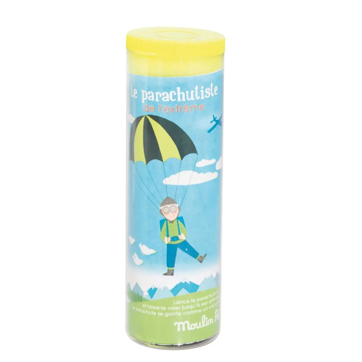 The parachute fills with air and floats gently down to the ground. Each parachutist matches his own parachute, each with their own colour and their own world!