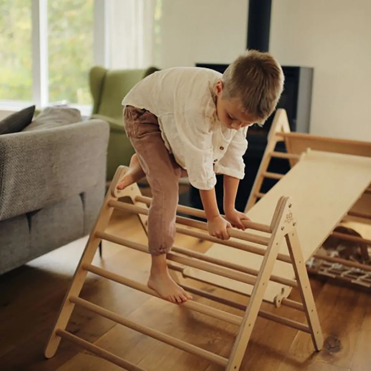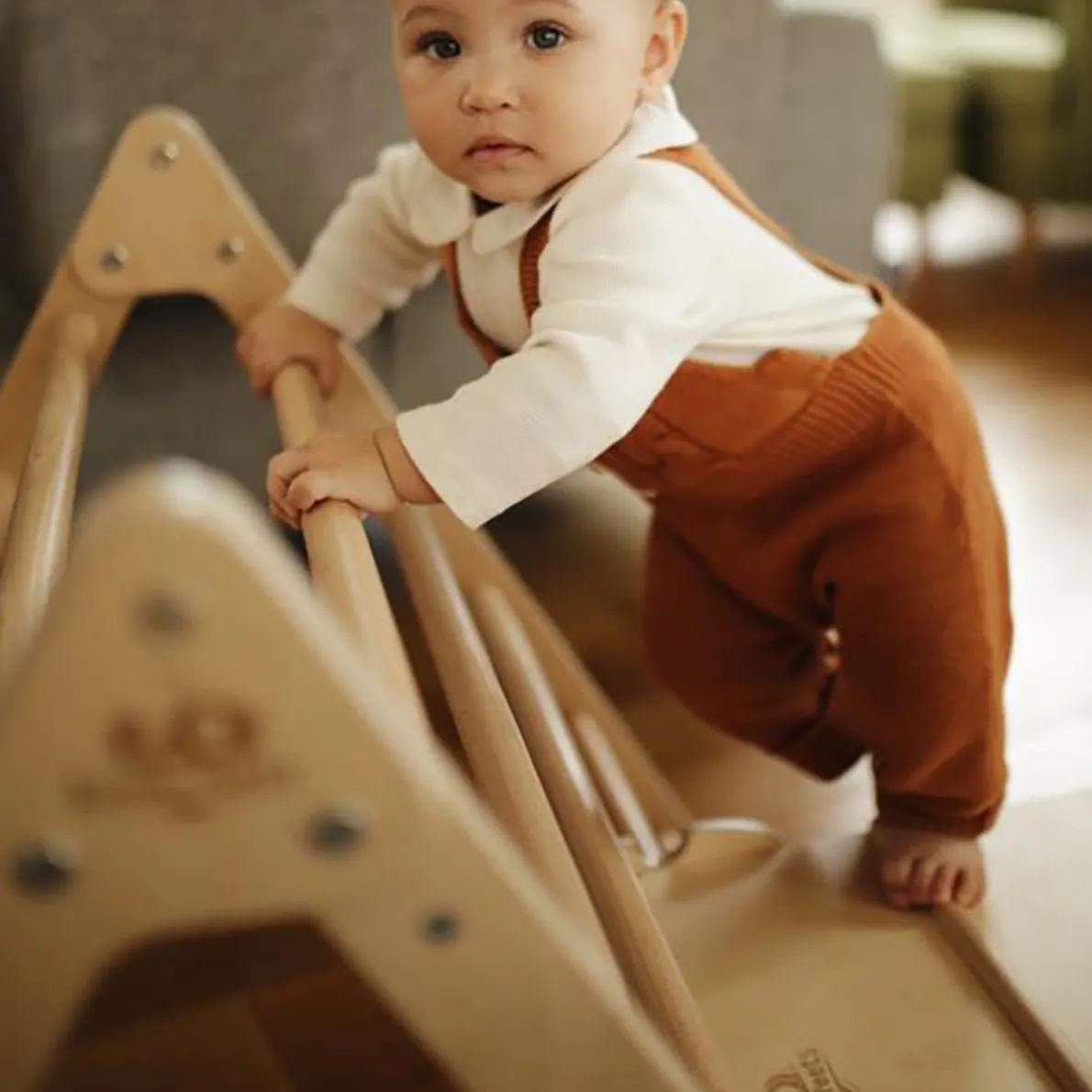 The MEDIUM Pikler Triple Climber Triangle features 2 sides with climbing dowels and is collapsible for easy storing. Crafted using responsibly-sourced birch plywood and beech wood, it’s a wonderful sustainable option for mobile little ones exploring their adventurous side. Through physical developmental play with the Pikler system, children gain muscular and cardiovascular strength, build self-esteem, improve gross motor skills and explore their imagination simultaneously.