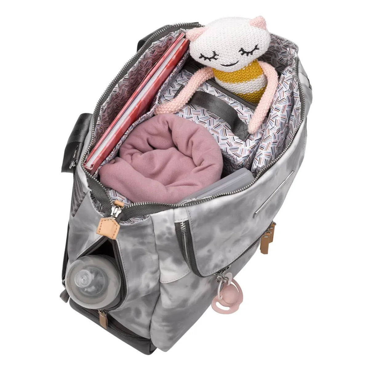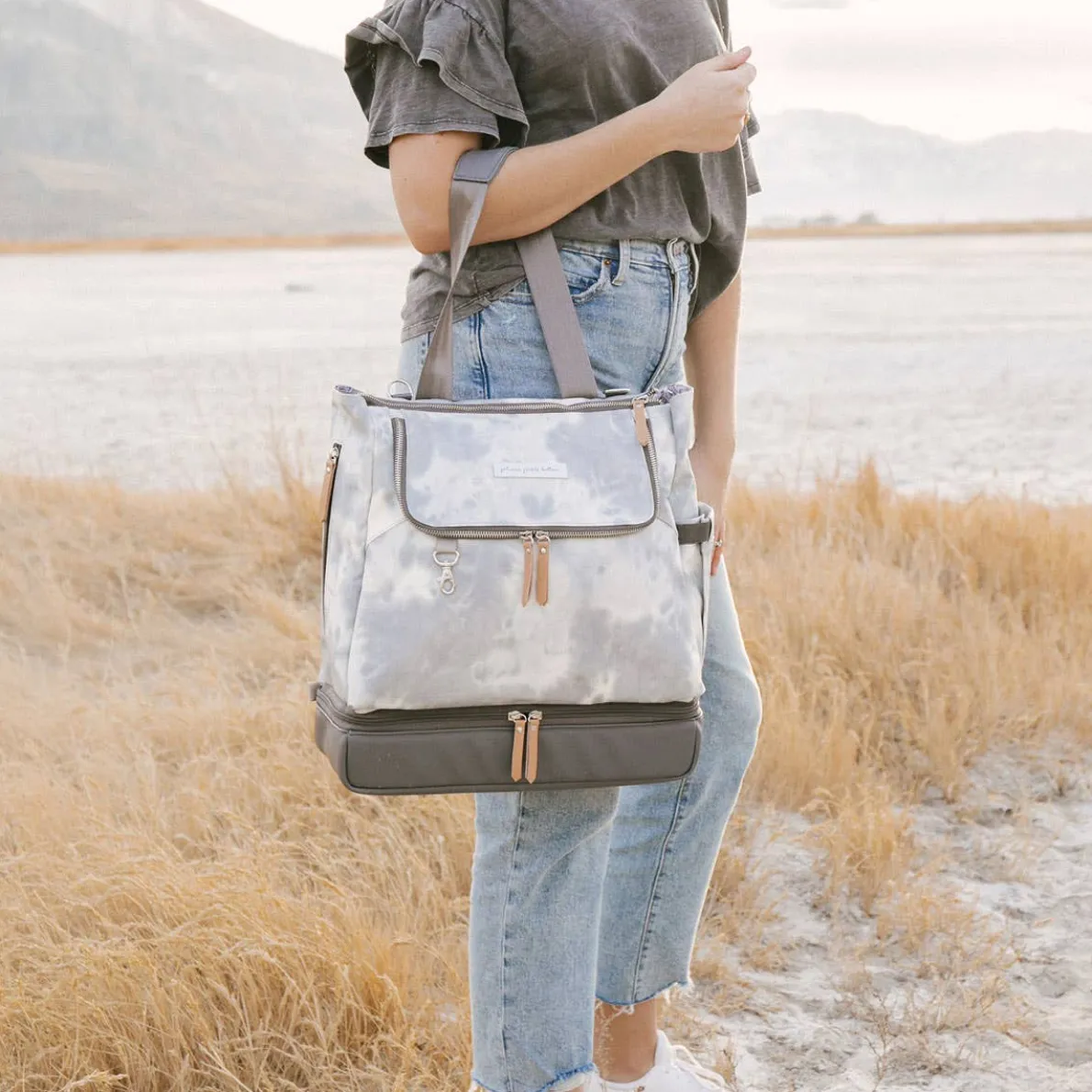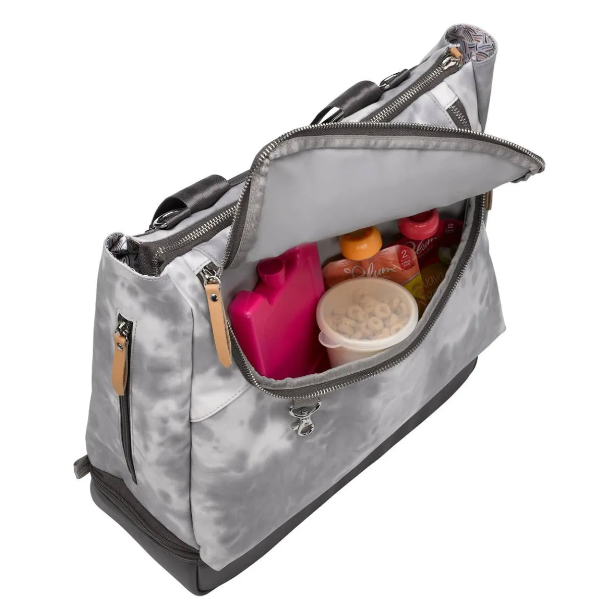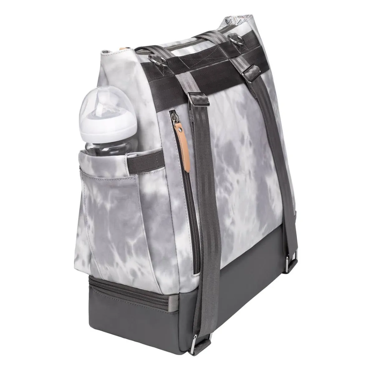 - Multiple carrying options for maximum versatility: As tote or backpack without adjusting straps, in hand with top grab handle, or on stroller with stroller clips (sold separately).