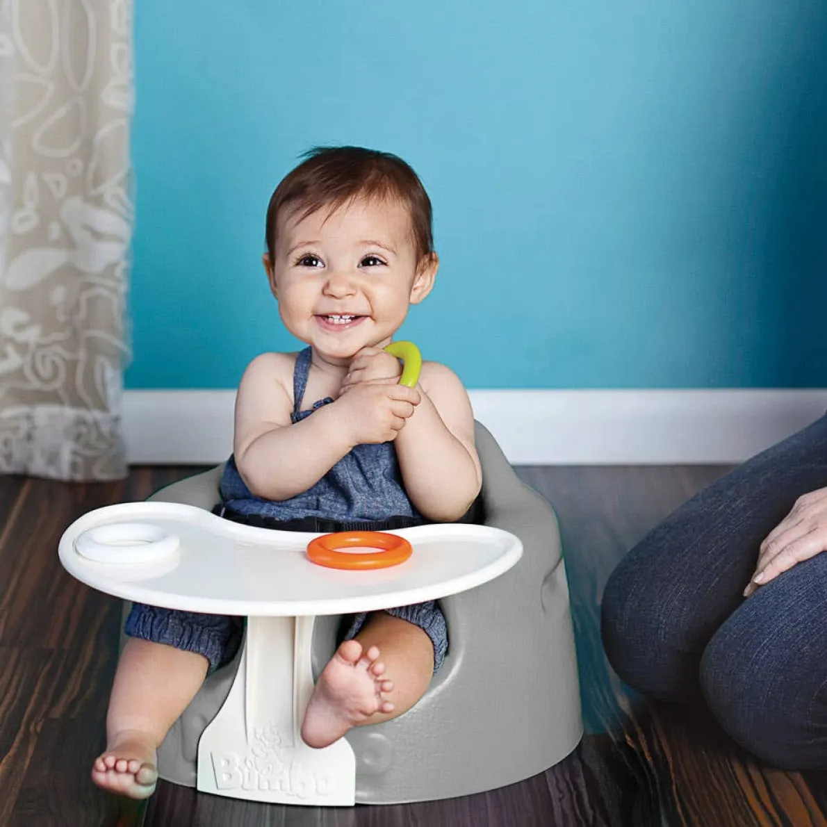 Designed for use with the Bumbo Floor Seat. Allows babies to keep their toys within arms reach when sitting in their Bumbo Floor Seat.The Bumbo Play Tray is made of a rigid plastic (ABS) which fits securely on to the Bumbo Floor Seat.10″ Length x 13″ Width x 7″ Height. The Play Tray has a cap that fits snug over the pommel of the seat and a catch that hooks under the rim of the seat. This design ensures a secure attachment of the tray to the Bumbo Floor Seat.The Tray’s secure fit provides additional security in making it more difficult for the infant to escape from the chair. Available in white only.