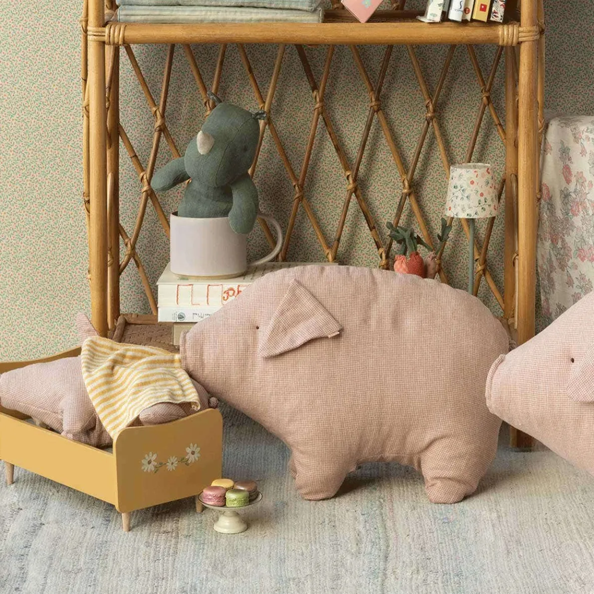 A true Maileg classic item. This pig is made in soft fabric which gives a lovely feel and is perfect for a warm hug. You can find this soft pig in three sizes.