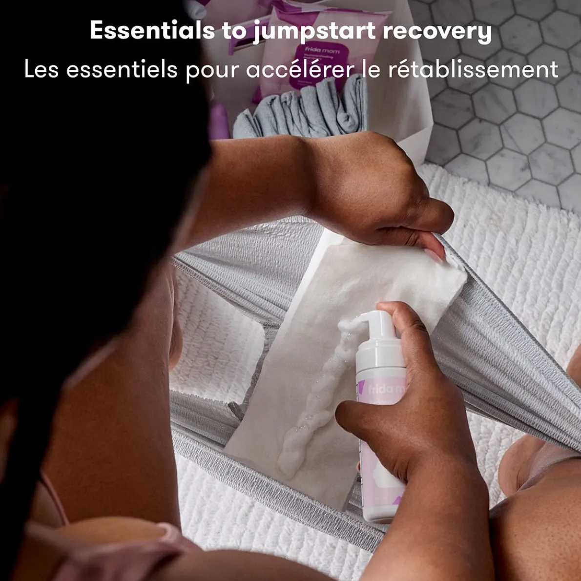 - POSTPARTUM RECOVERY REGIMEN: For postpartum care, this kit includes steps 2 – 5 of the Frida Mom 5-step Postpartum Recovery Regimen to cool, absorb, soothe and relieve pain in the perineal area.