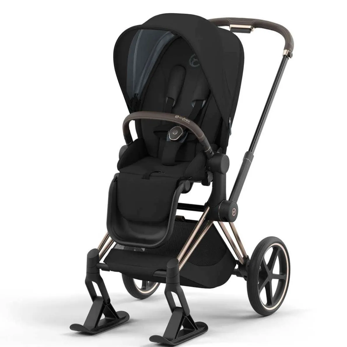 The Cybex Priam Skis can replace the front wheels to transform your Priam into a stylish snowmobile.