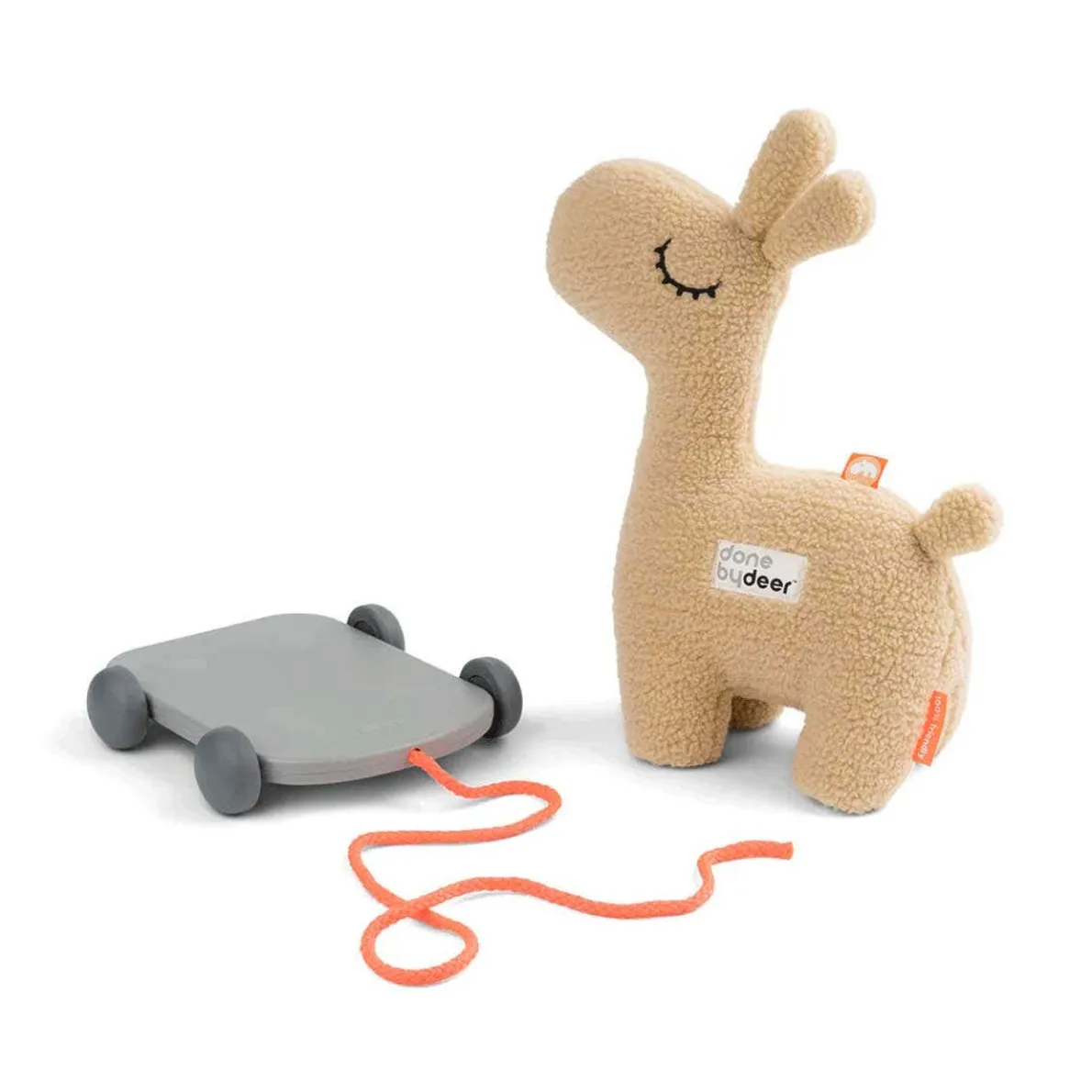 - The Lalee pull along toy is made of soft teddybear fabric in a sandy colour